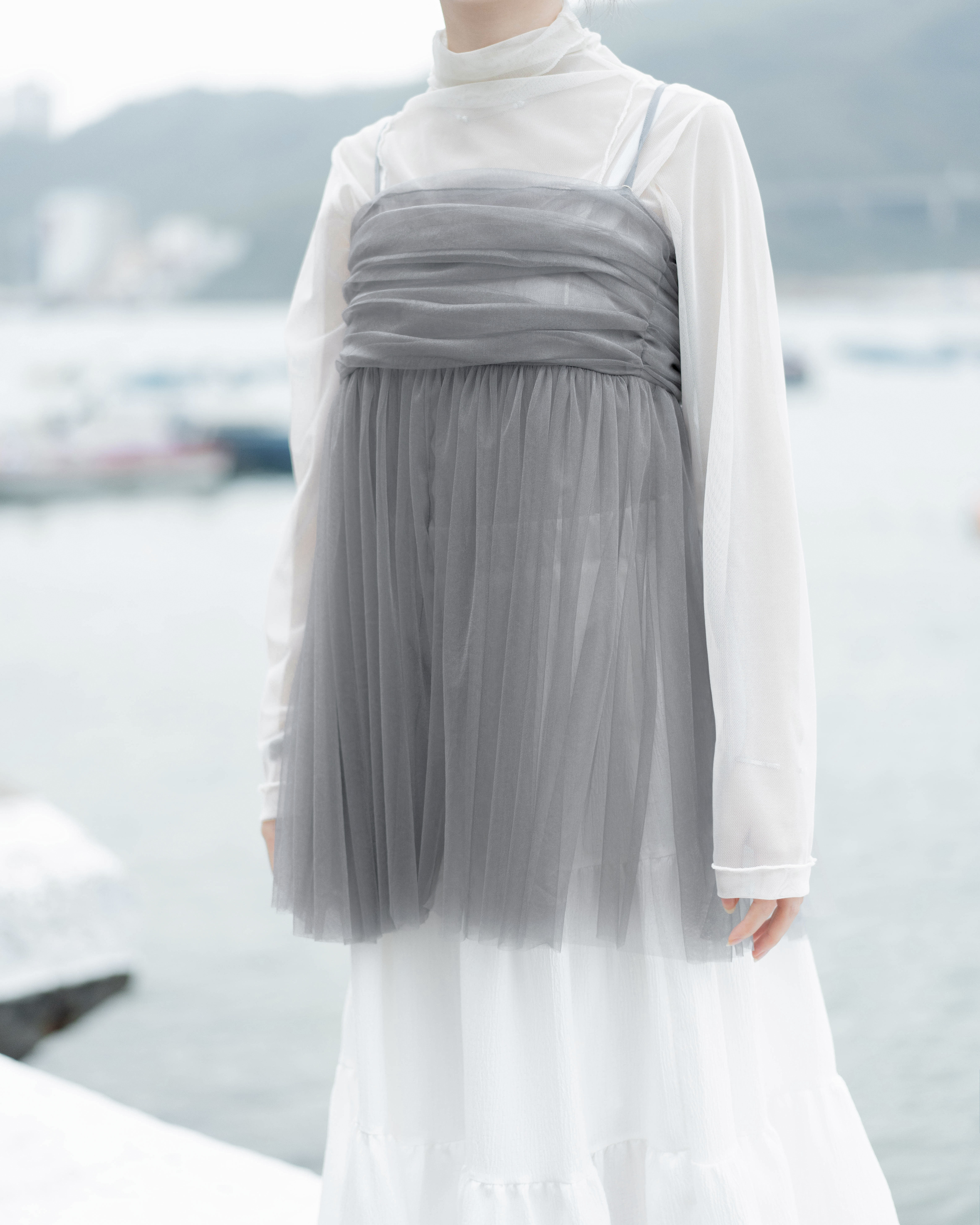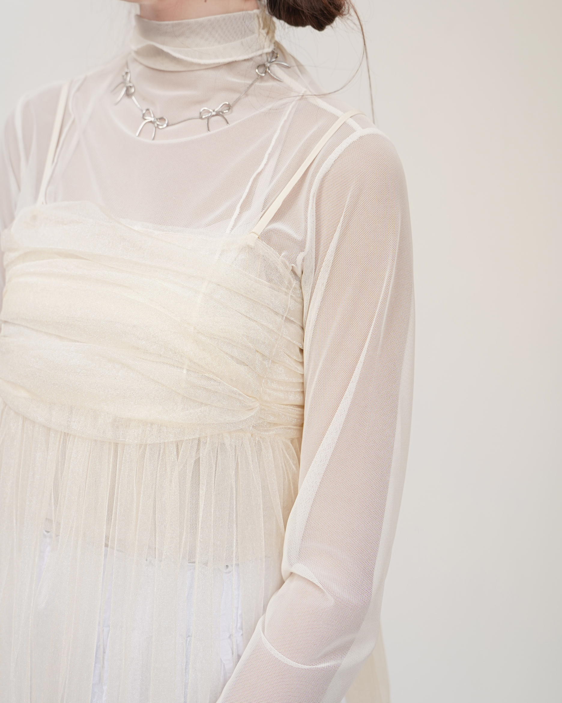 See-through高領透薄上衣 · 4色入