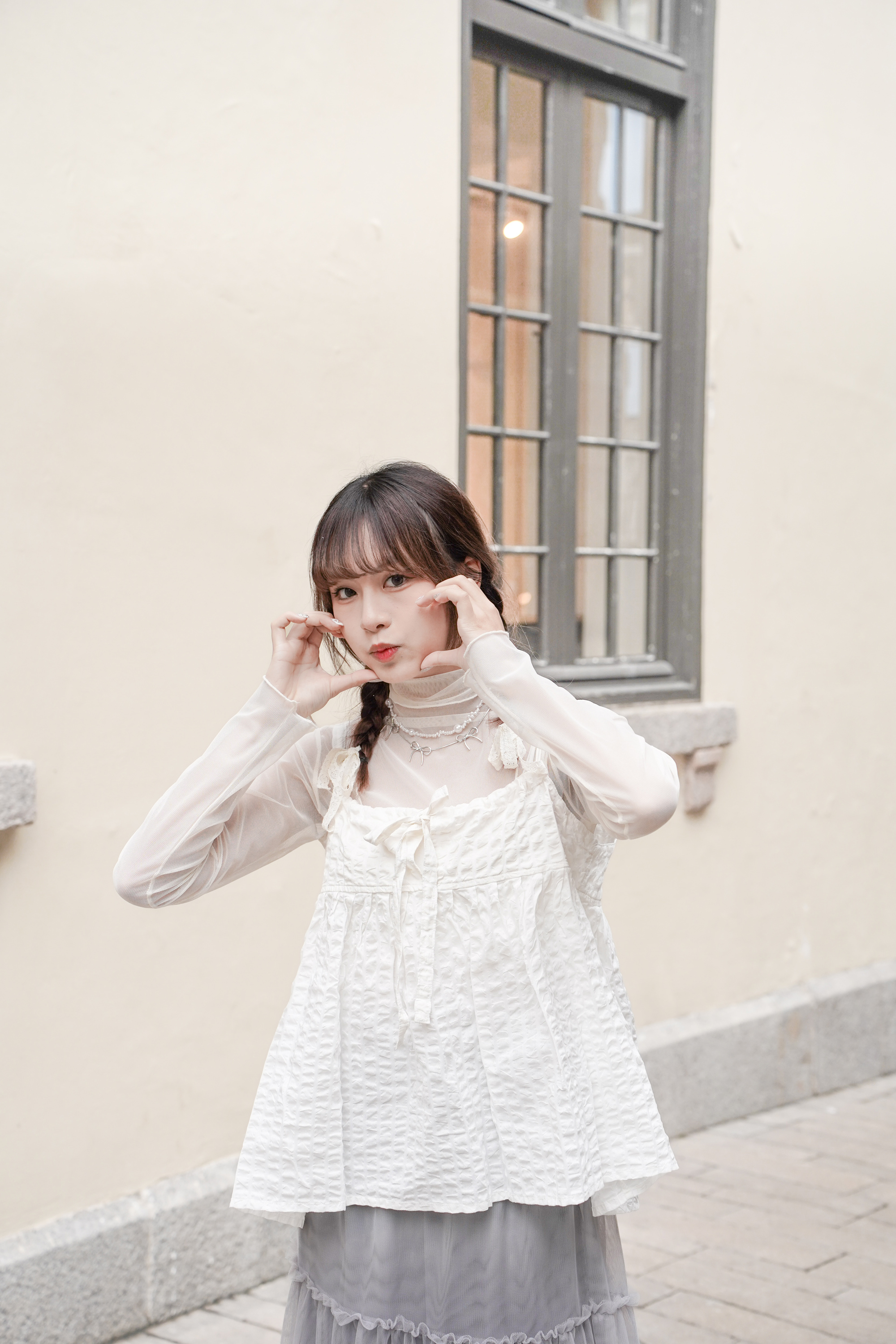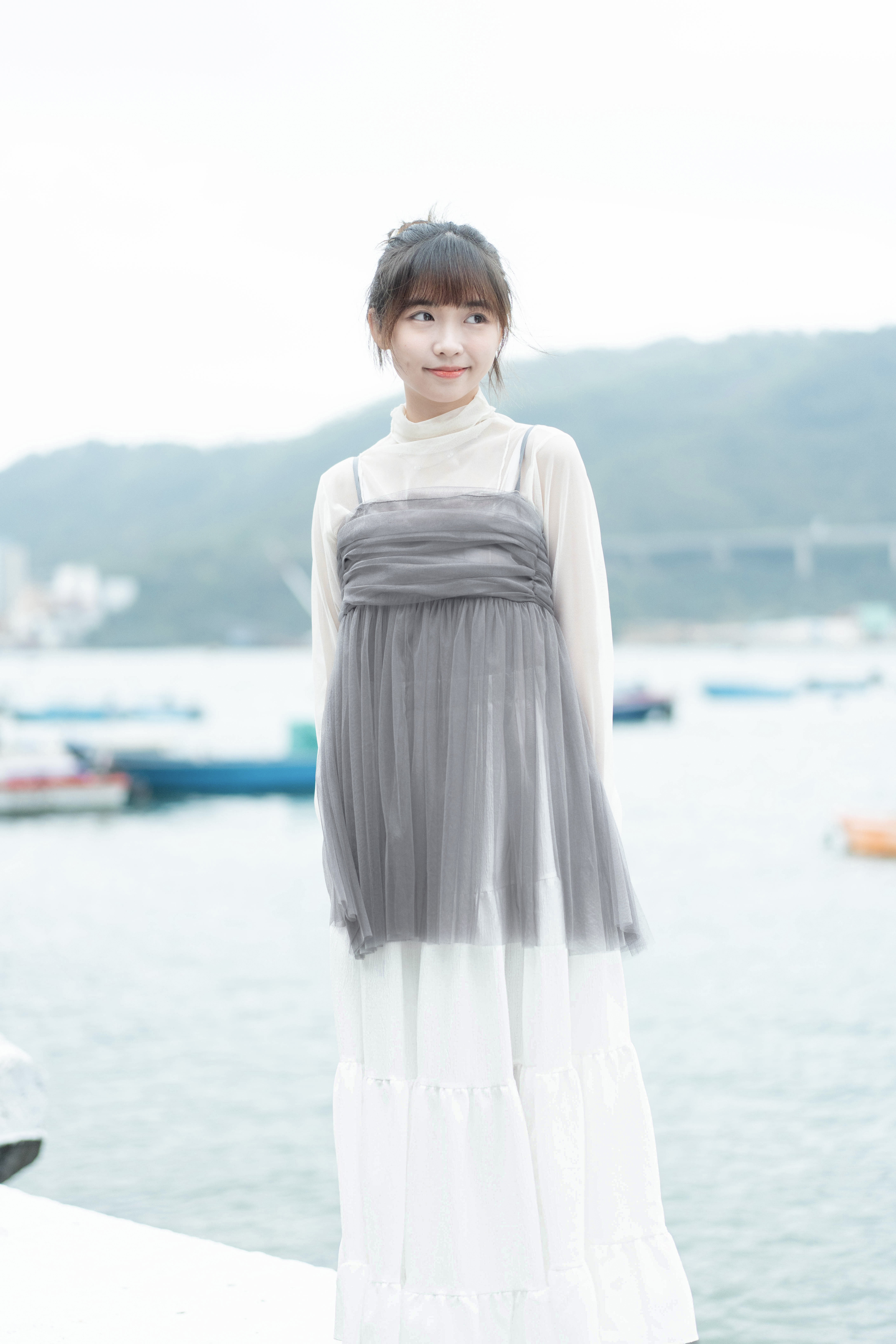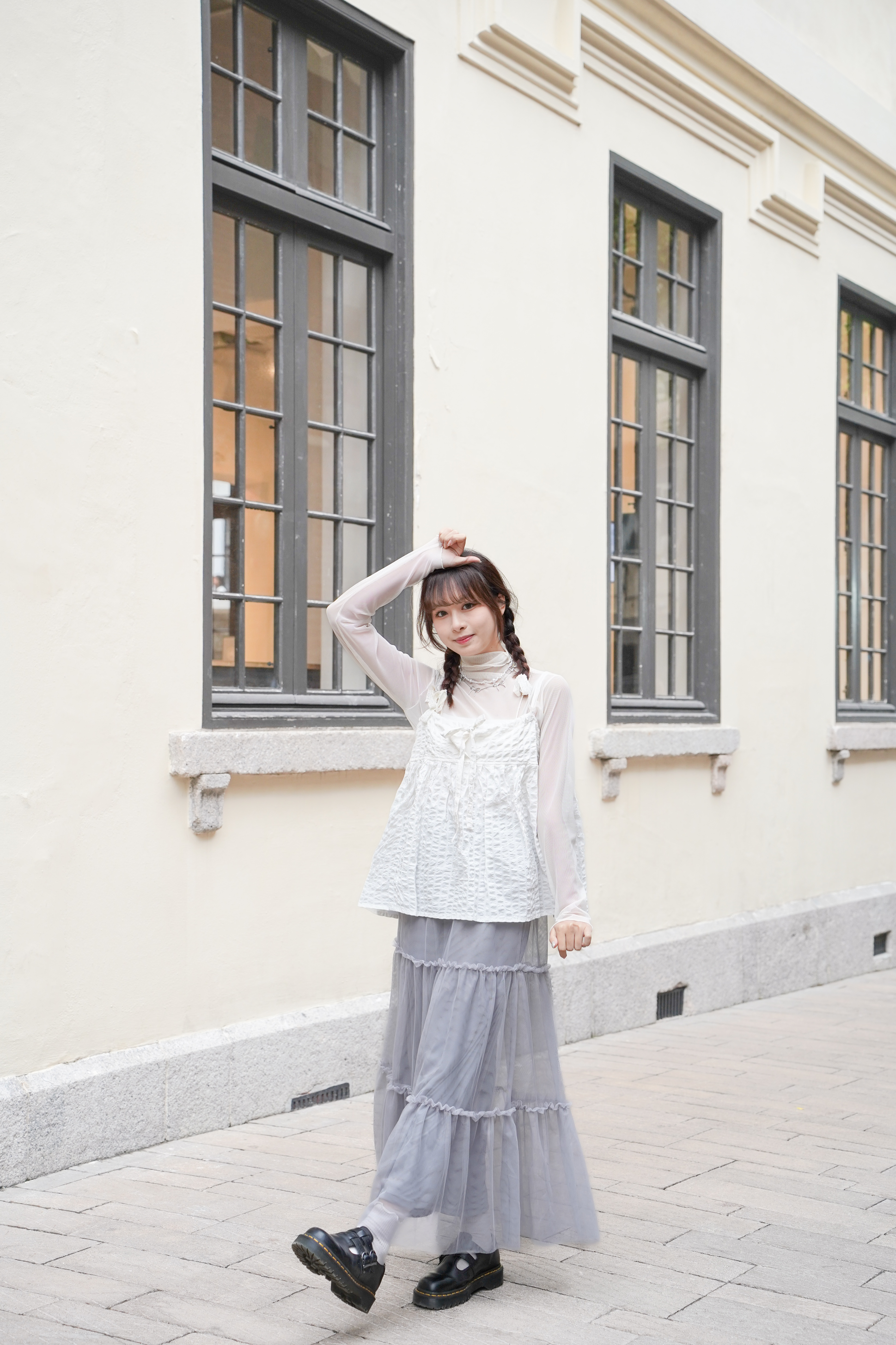 小高領 手袖位置做咗ruffle邊