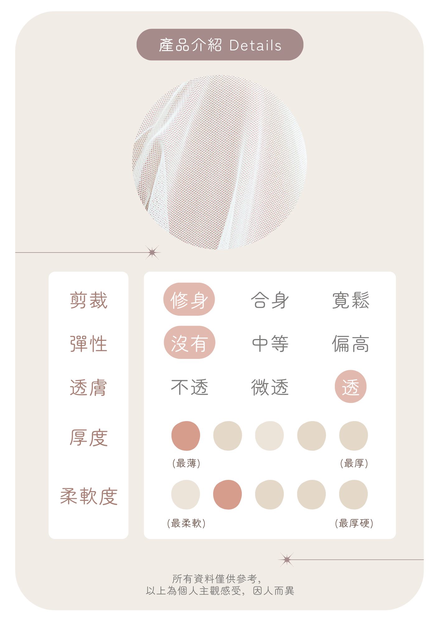 🦦: 薄紗質地較透薄 容易因應陽光或背景顏色而改變 建議下單前斟酌考慮喔~