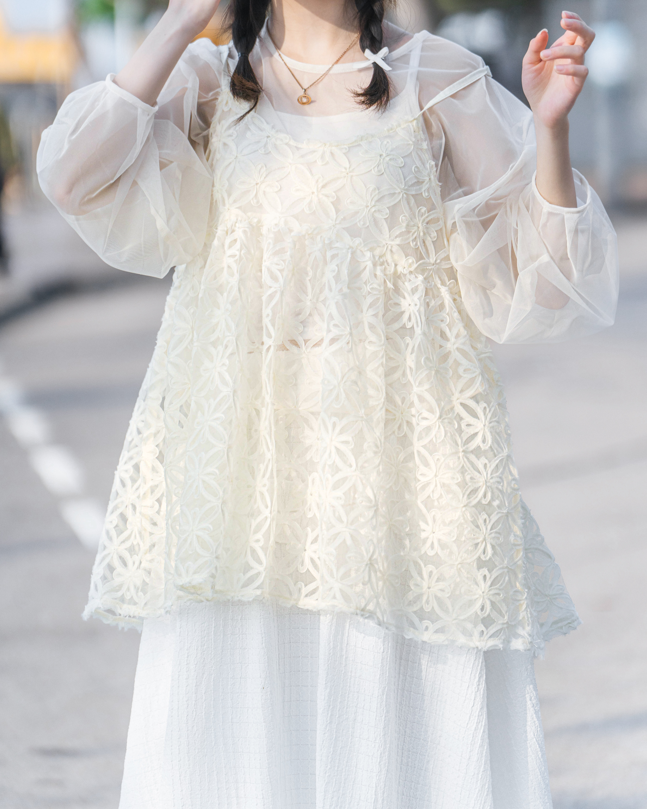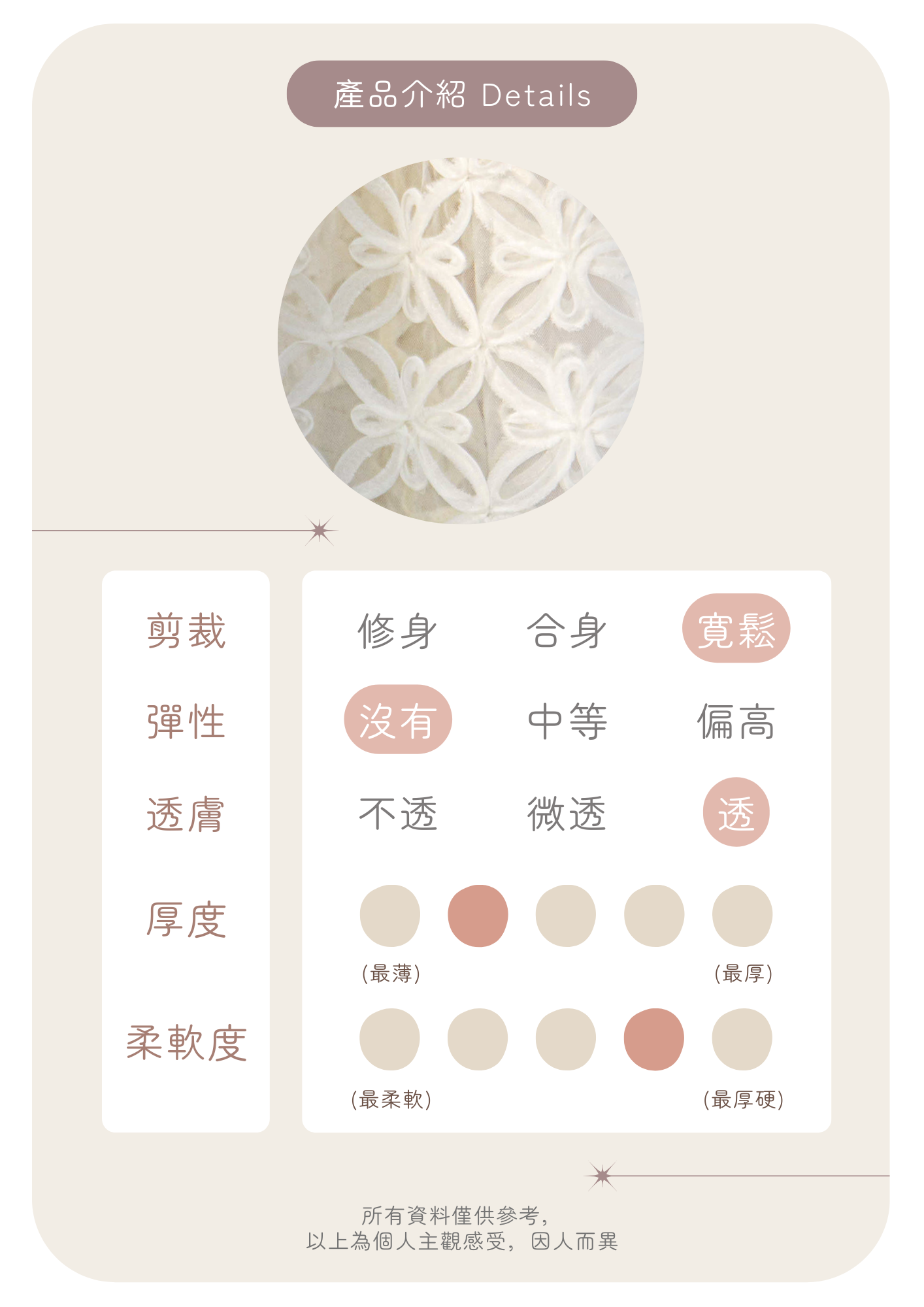 🦦: 薄紗質地較透薄 容易因應陽光或背景顏色而改變 建議下單前斟酌考慮喔~