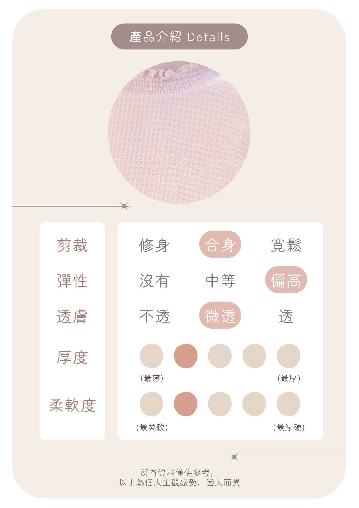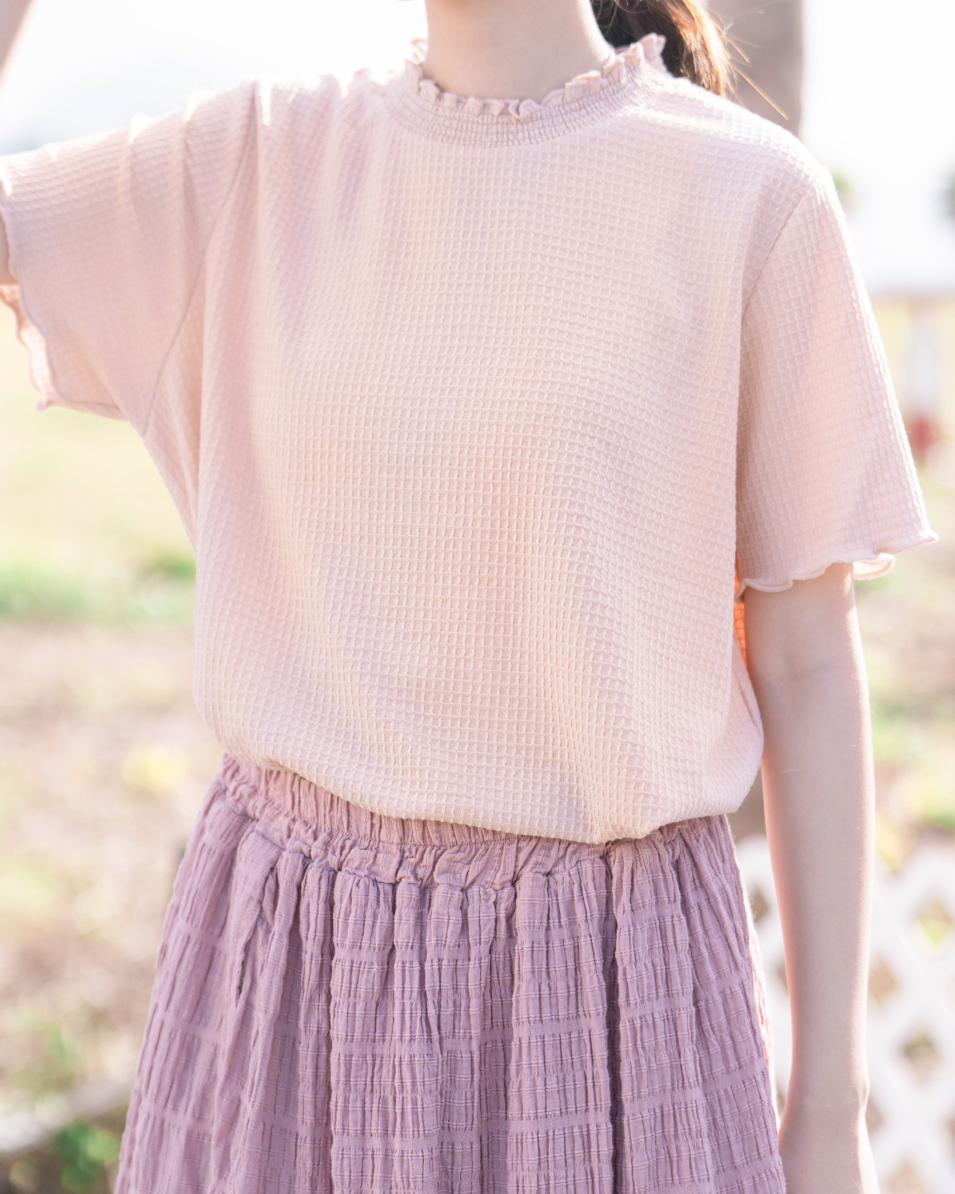布料以親膚嘅窩夫格為主