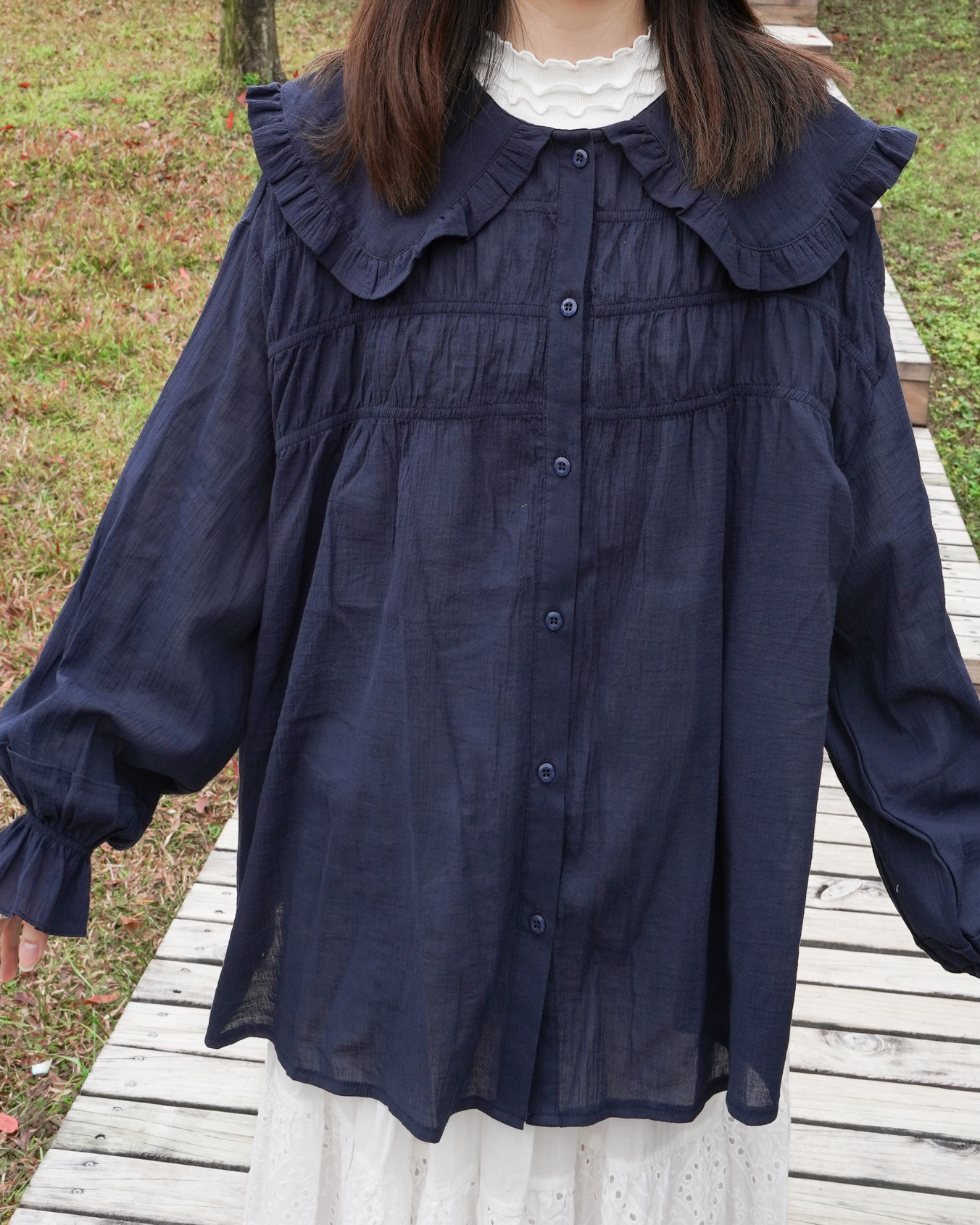 〘 大娃娃摺疊領薄料上衣  〙