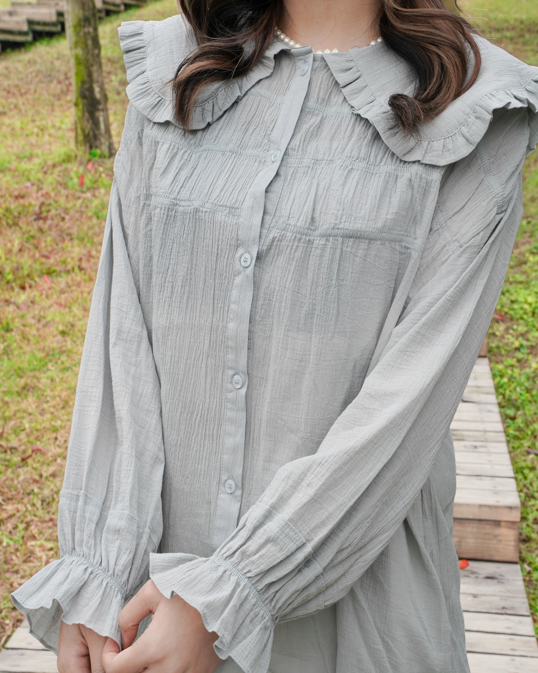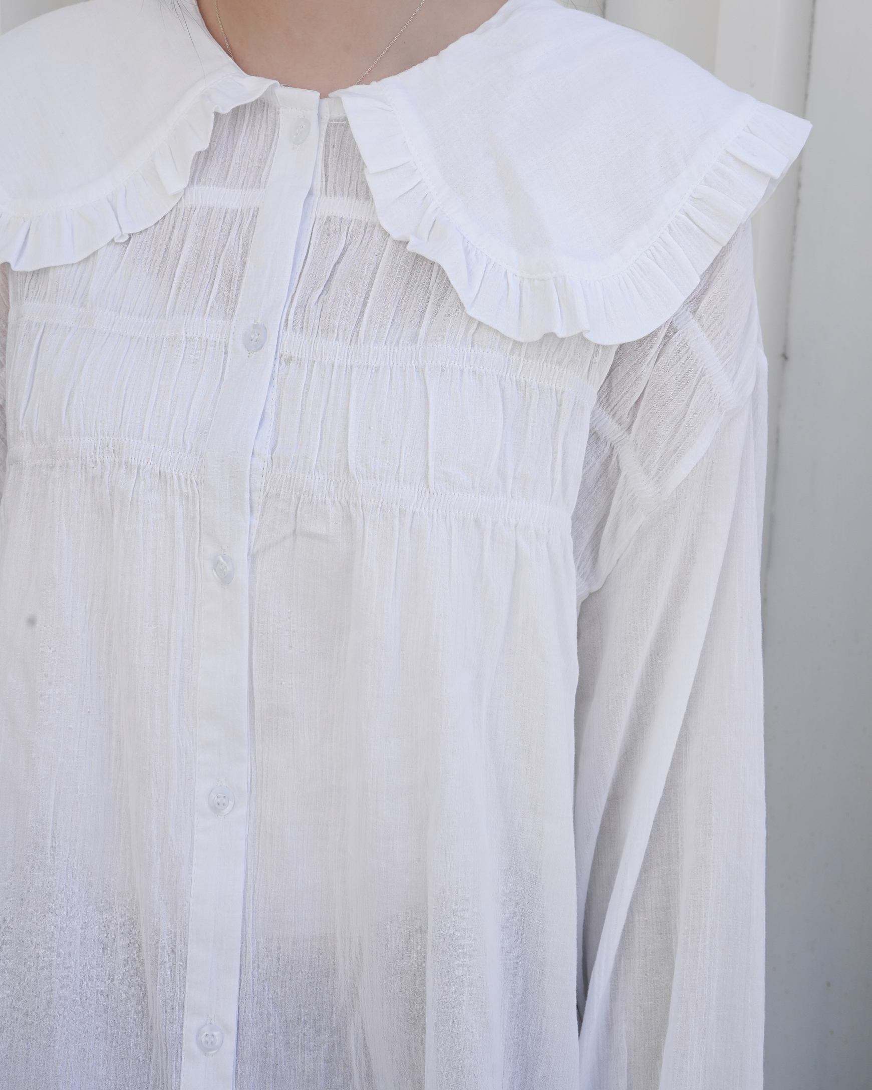 大娃娃摺疊領薄料上衣 · 3色入