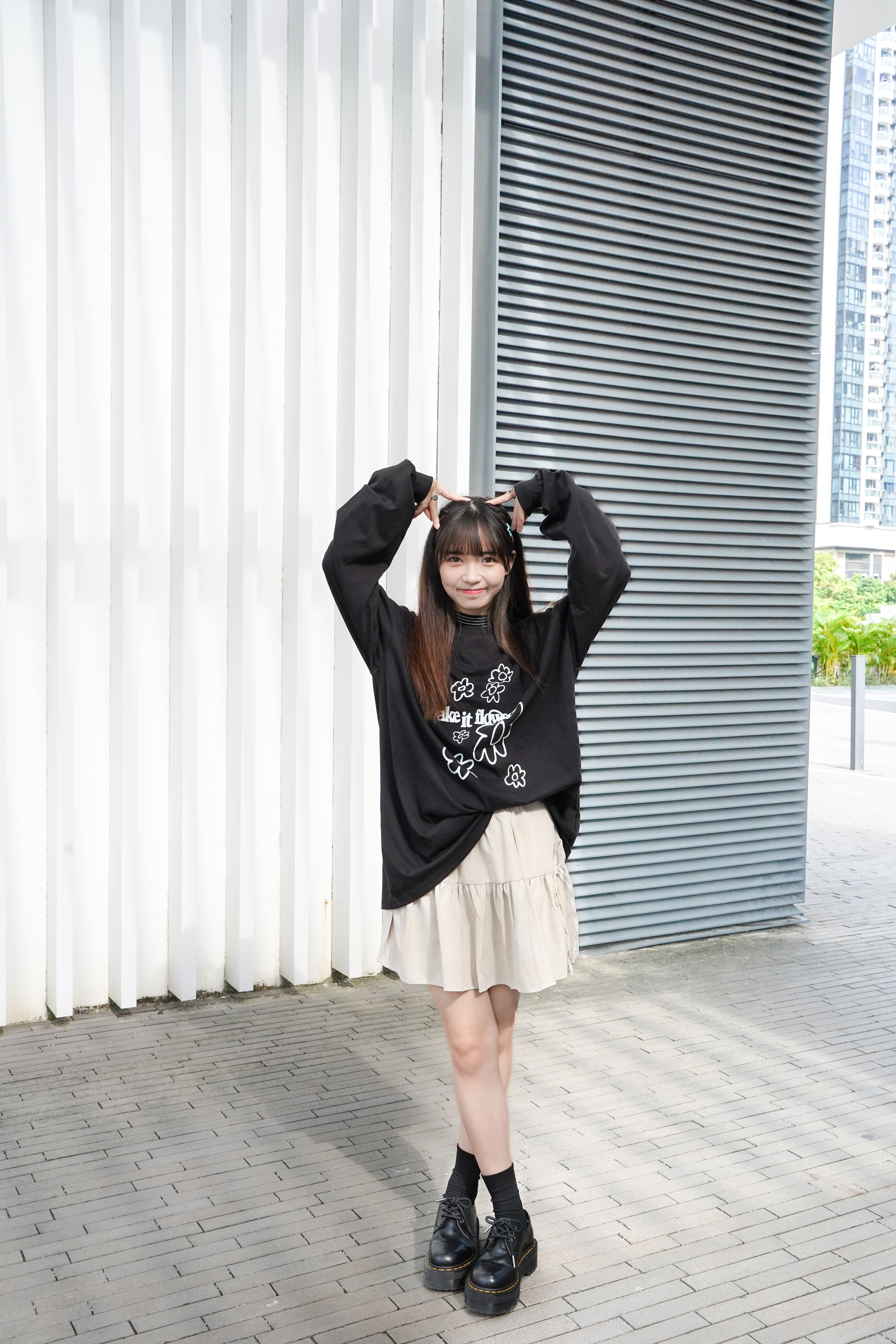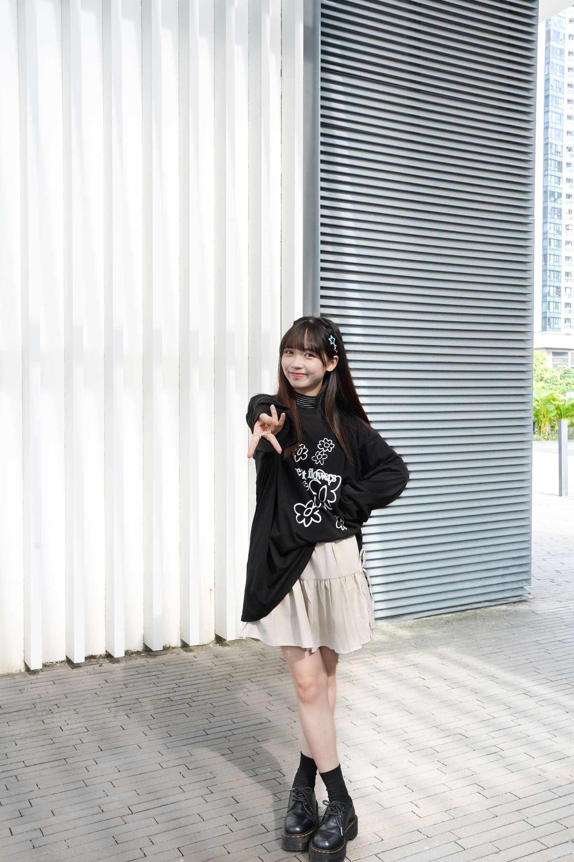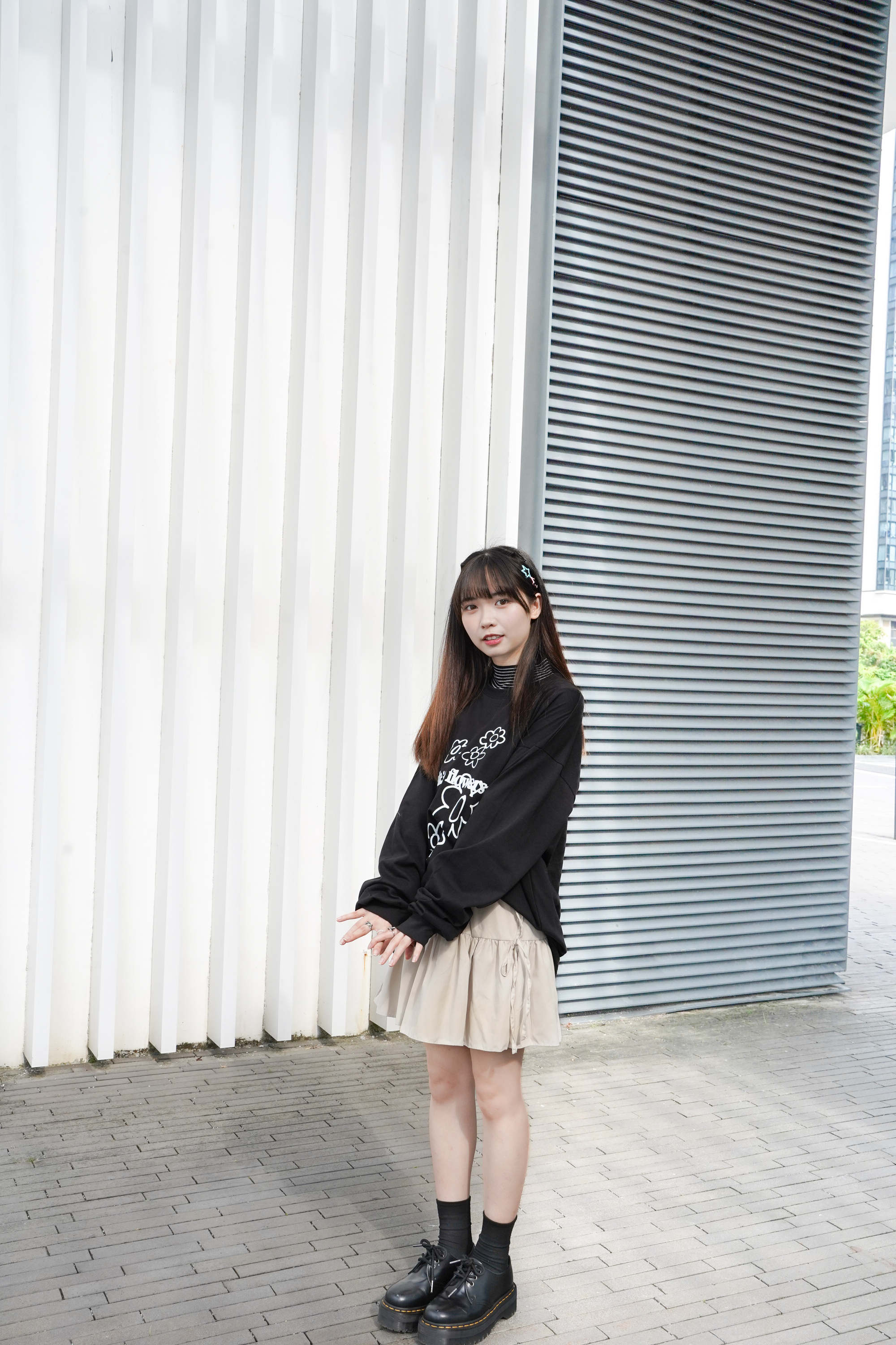 Model: 160cm | 白底黑間