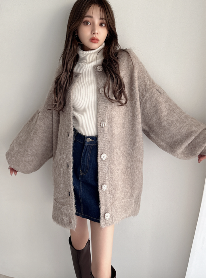 必入!滑毛毛寛長毛衣外套 · 4色入