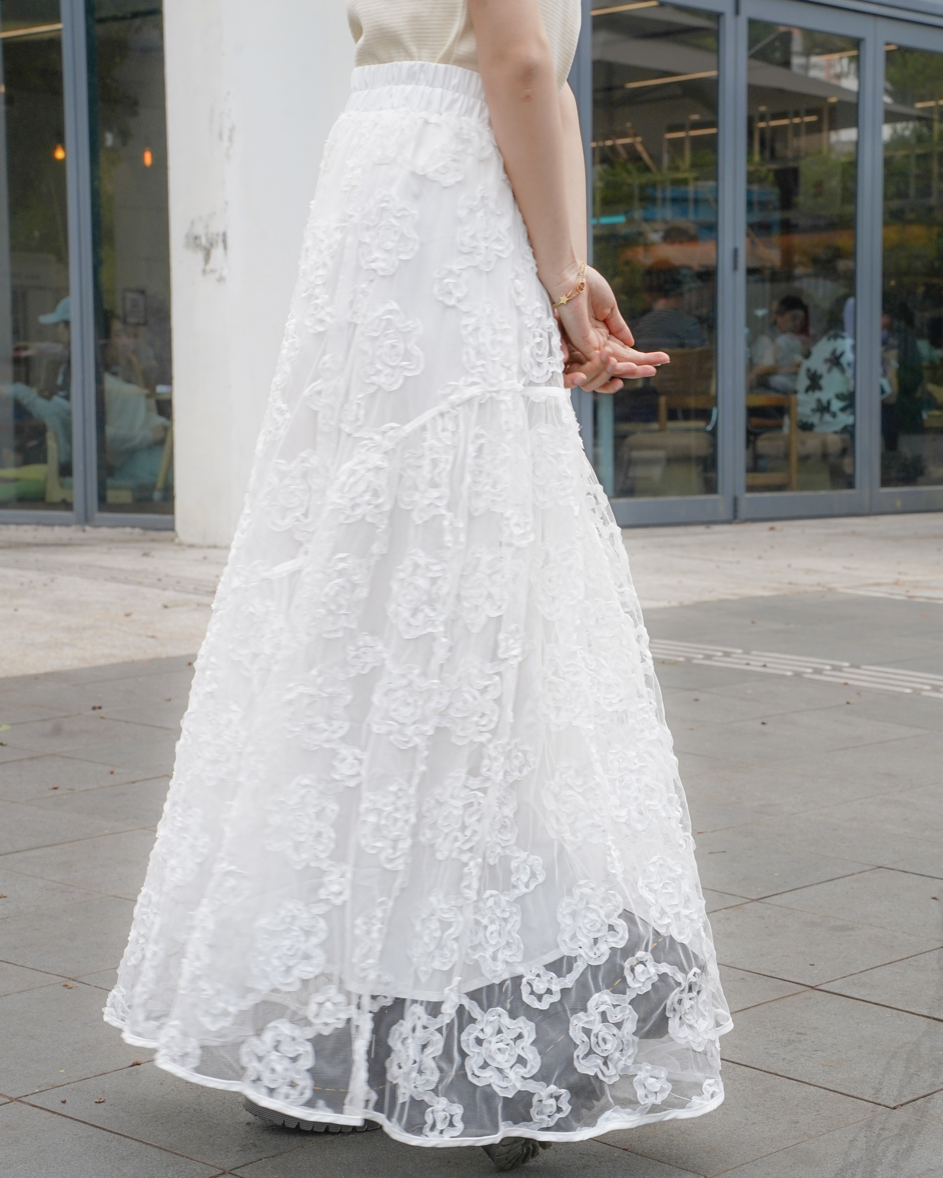 晶瑩感立體花花紗面裙 · 1色入