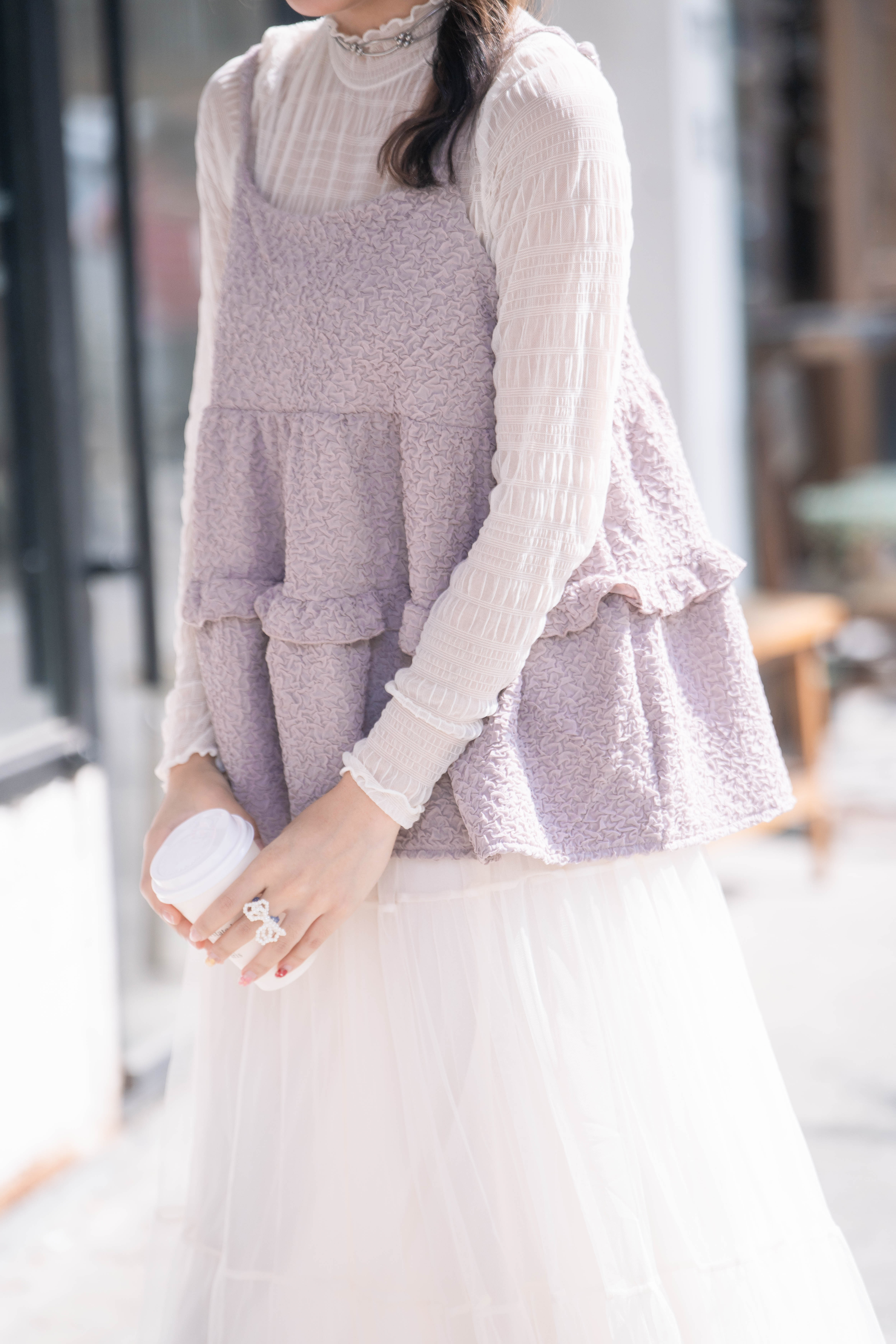 〘 皺皺薄紗料Ruffle領上衣 〙