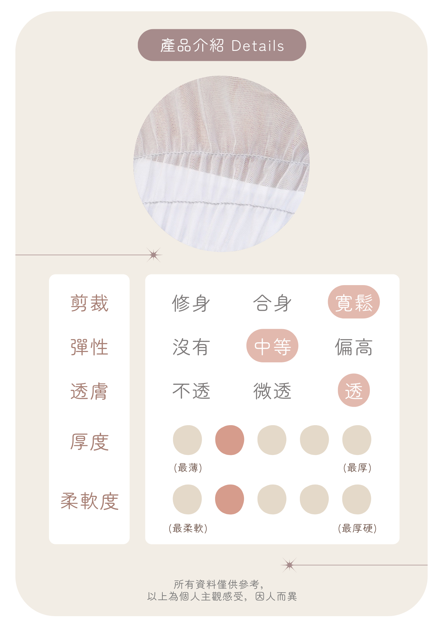 🦦: 薄紗質地較透薄 容易因應陽光或背景顏色而改變 建議下單前斟酌考慮喔~
