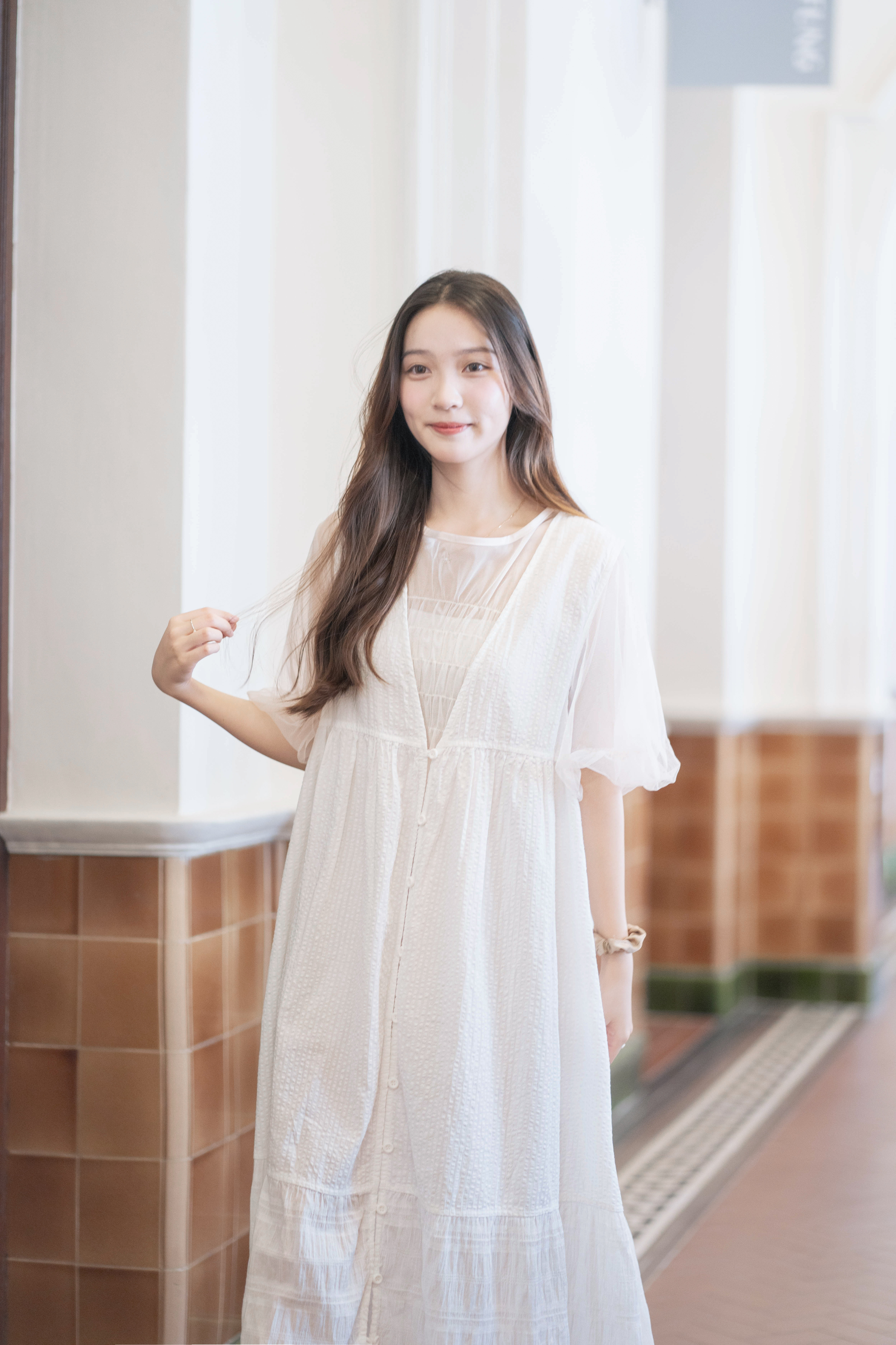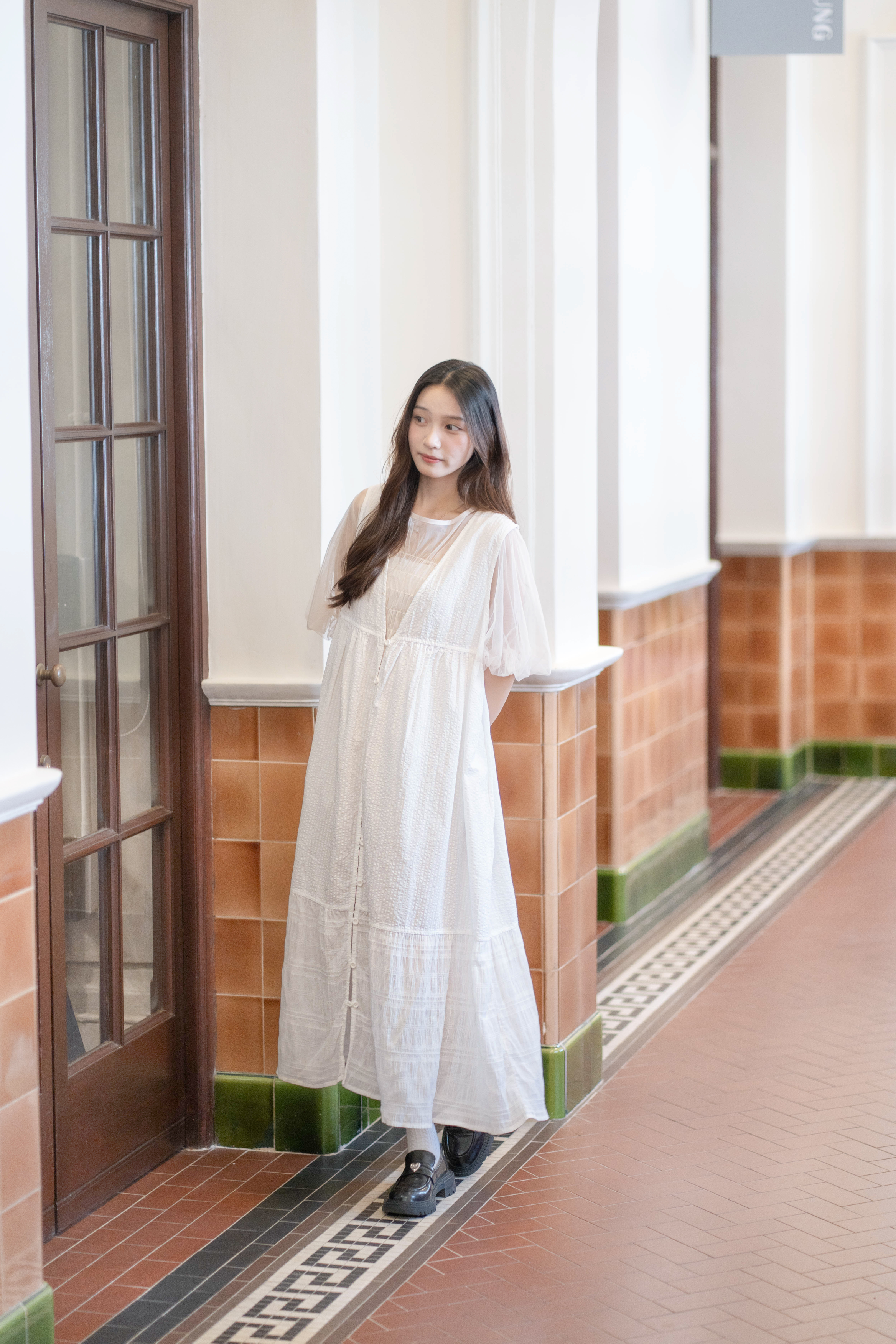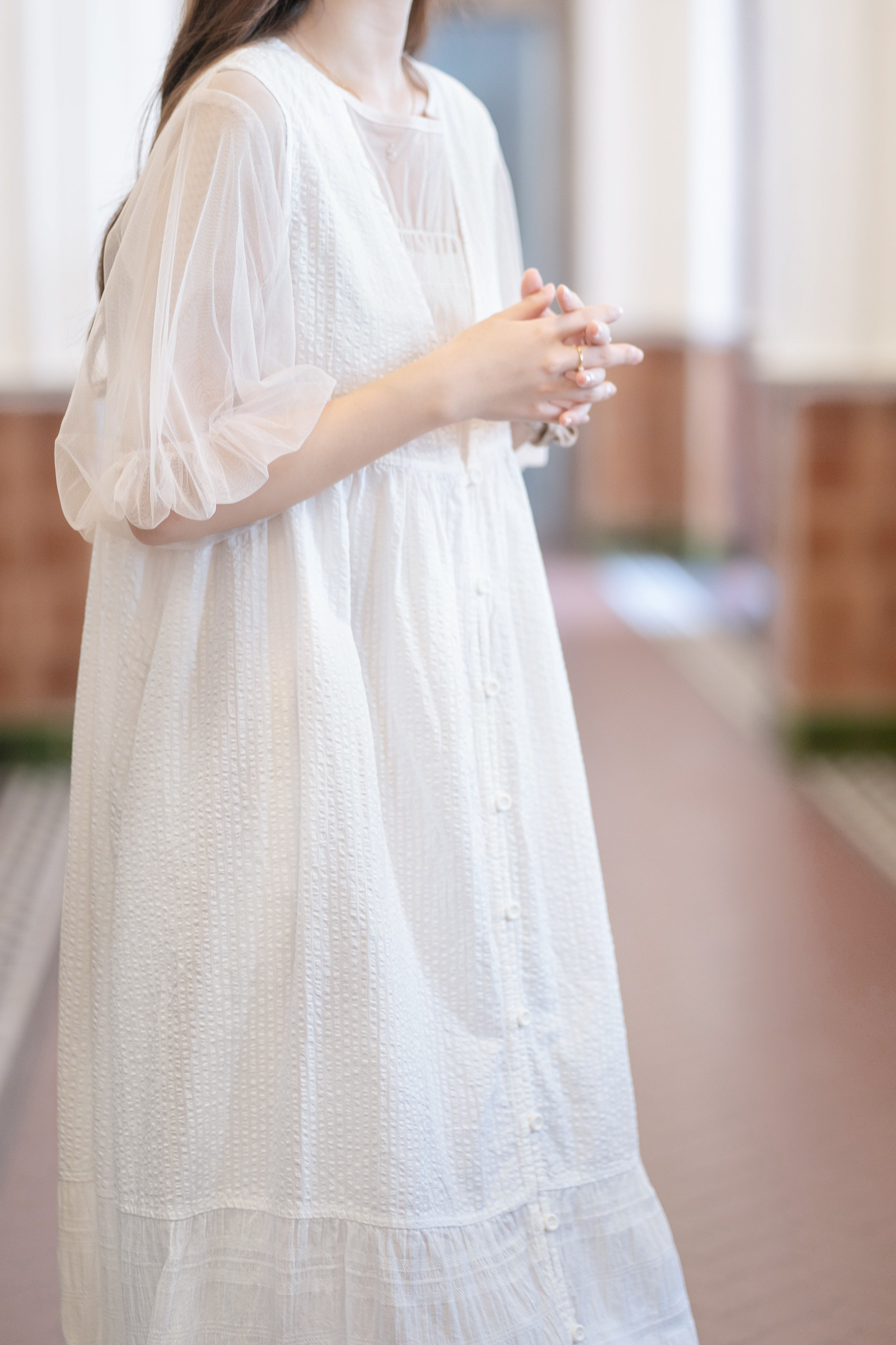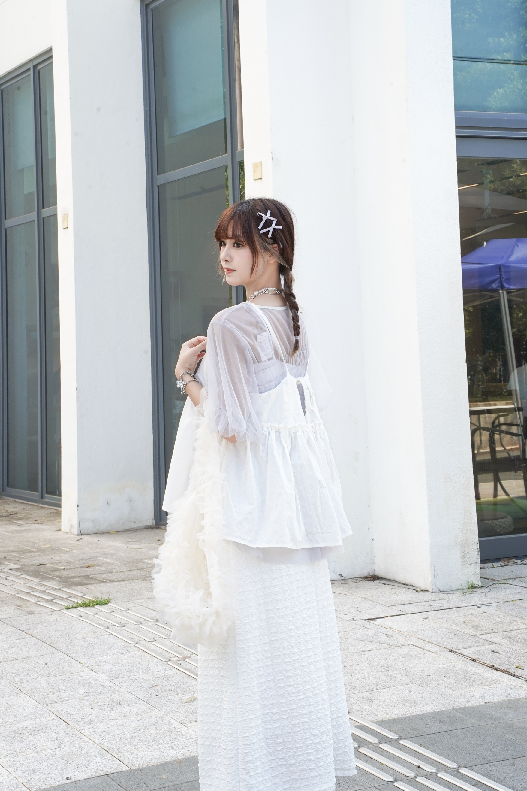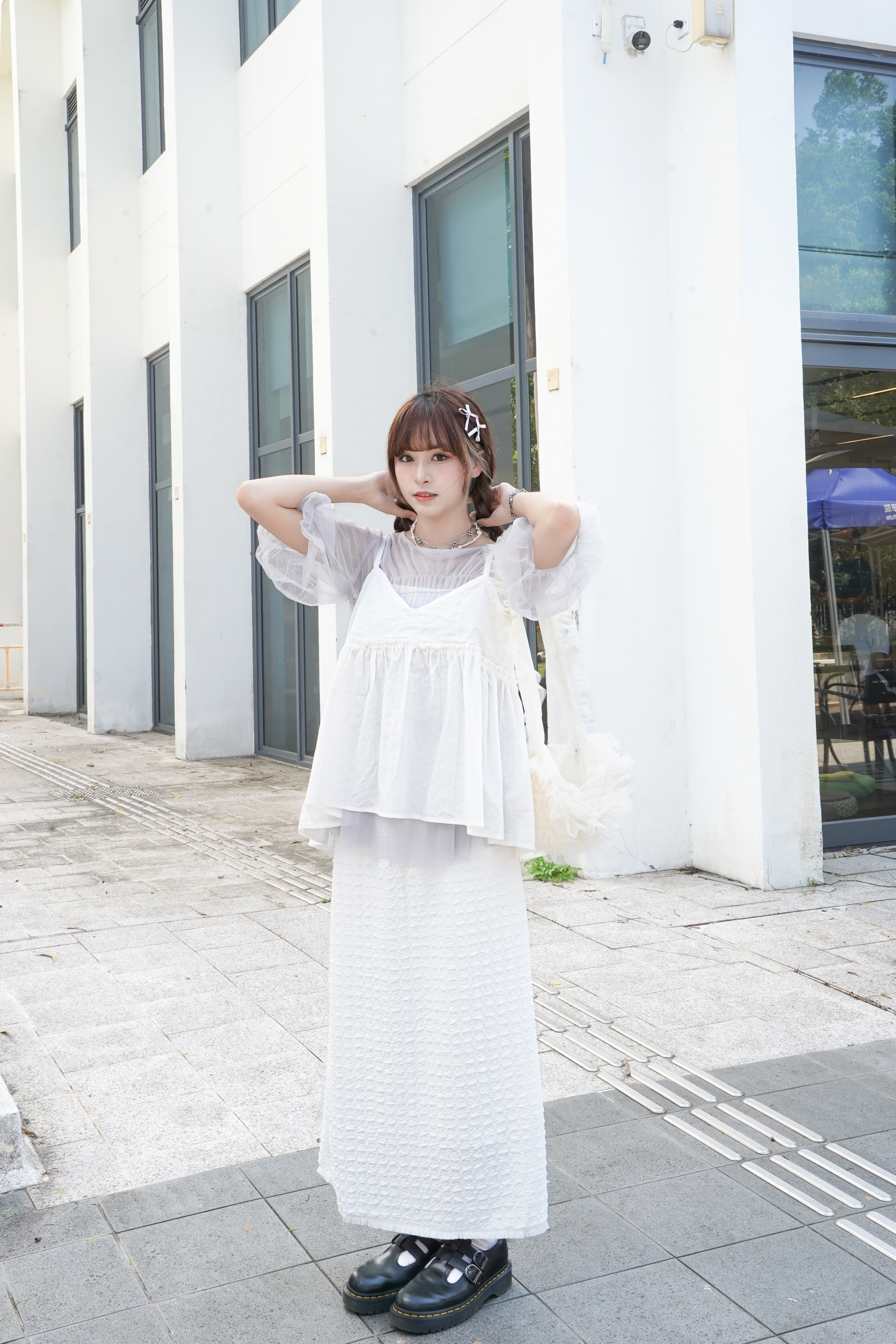 〘 皺褶泡泡袖傘形薄紗 〙