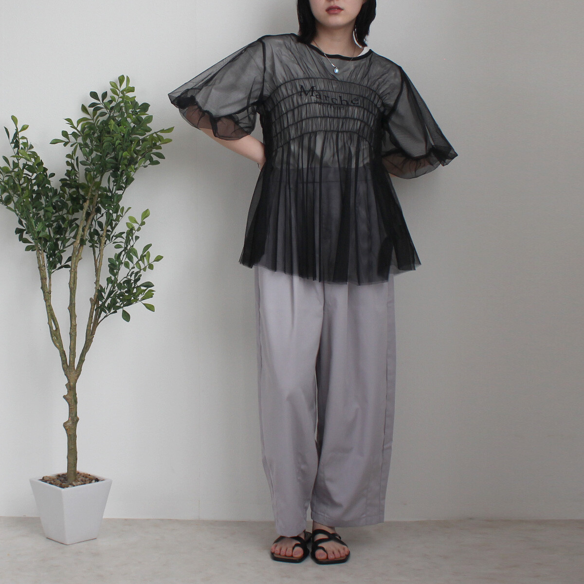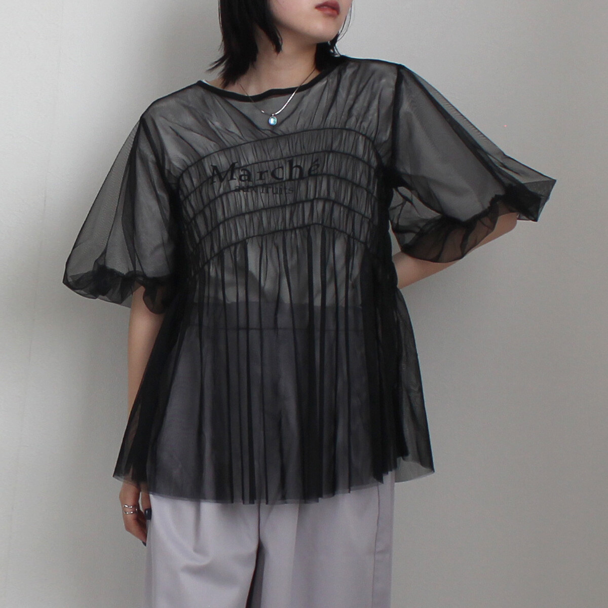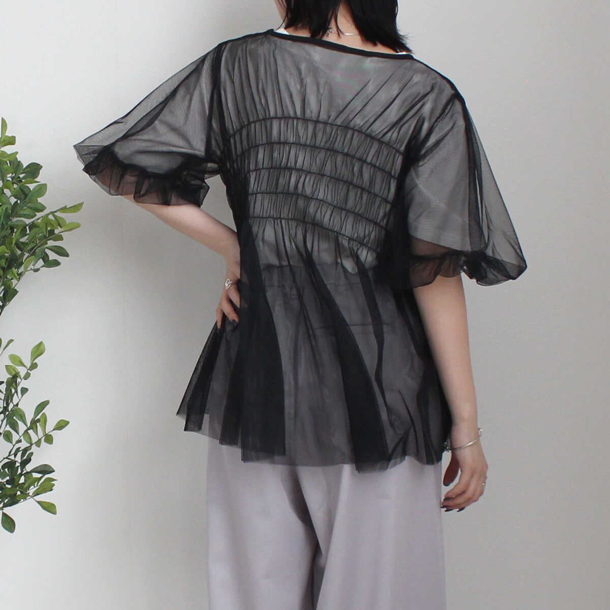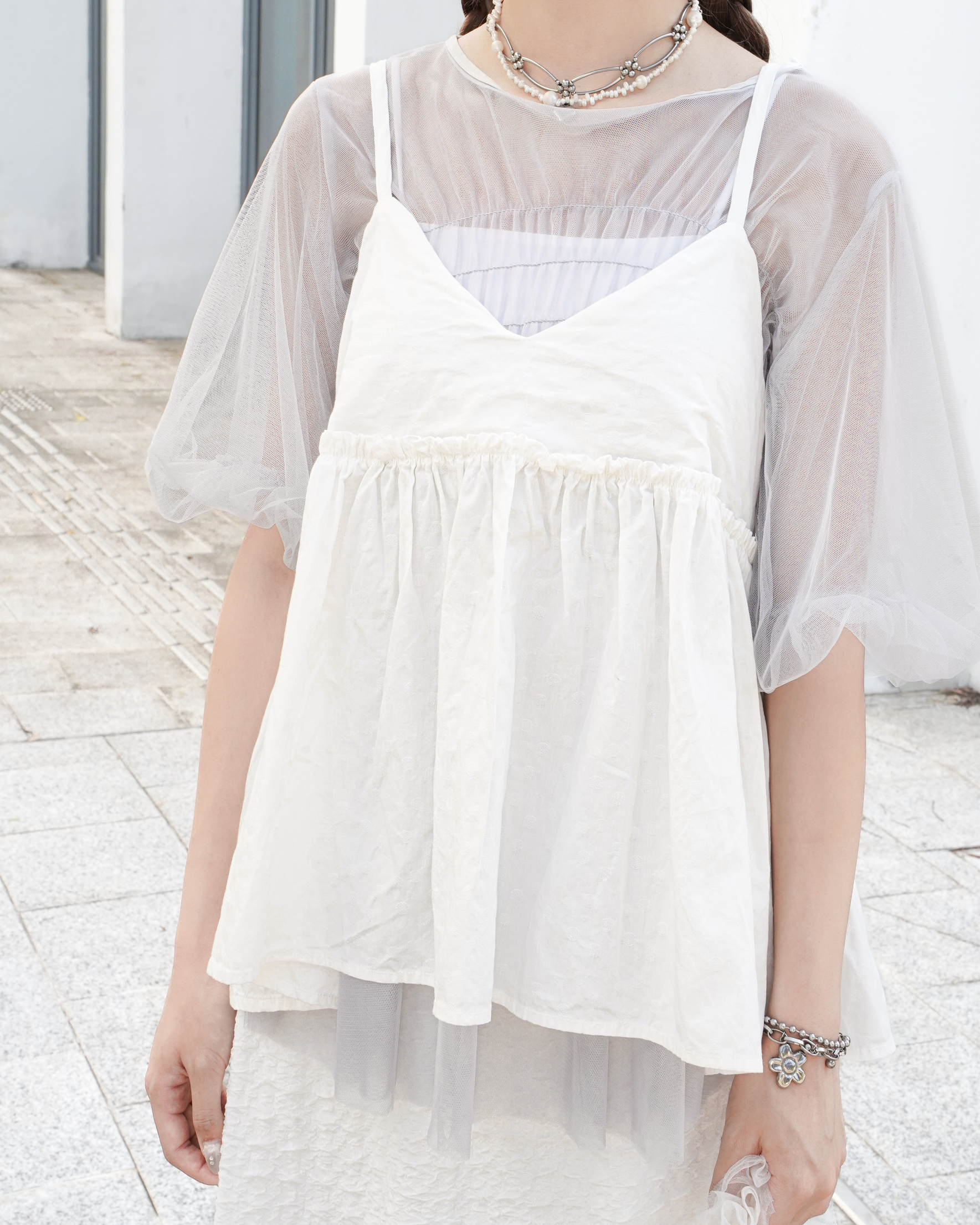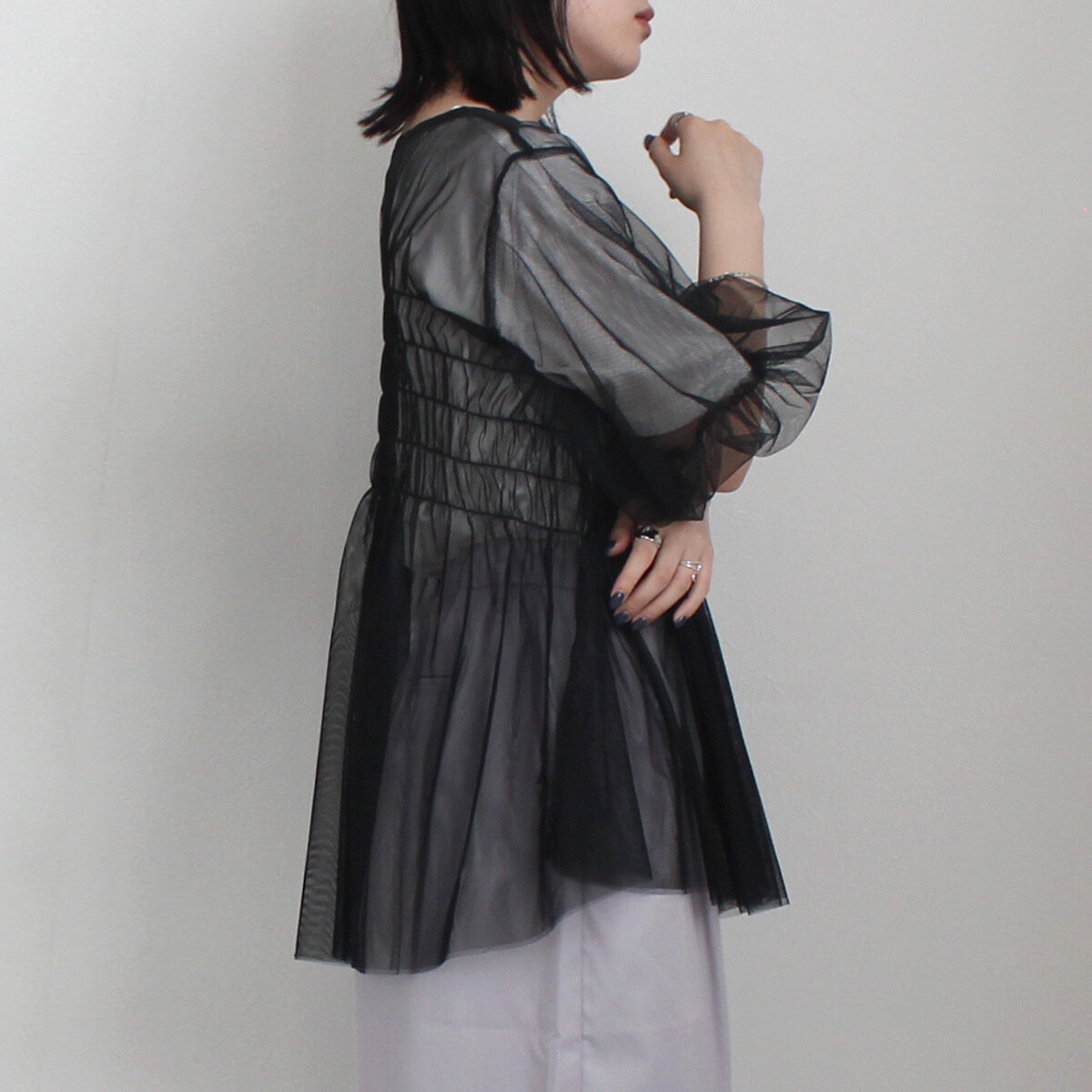 皺褶泡泡袖傘形薄紗 · 3色入