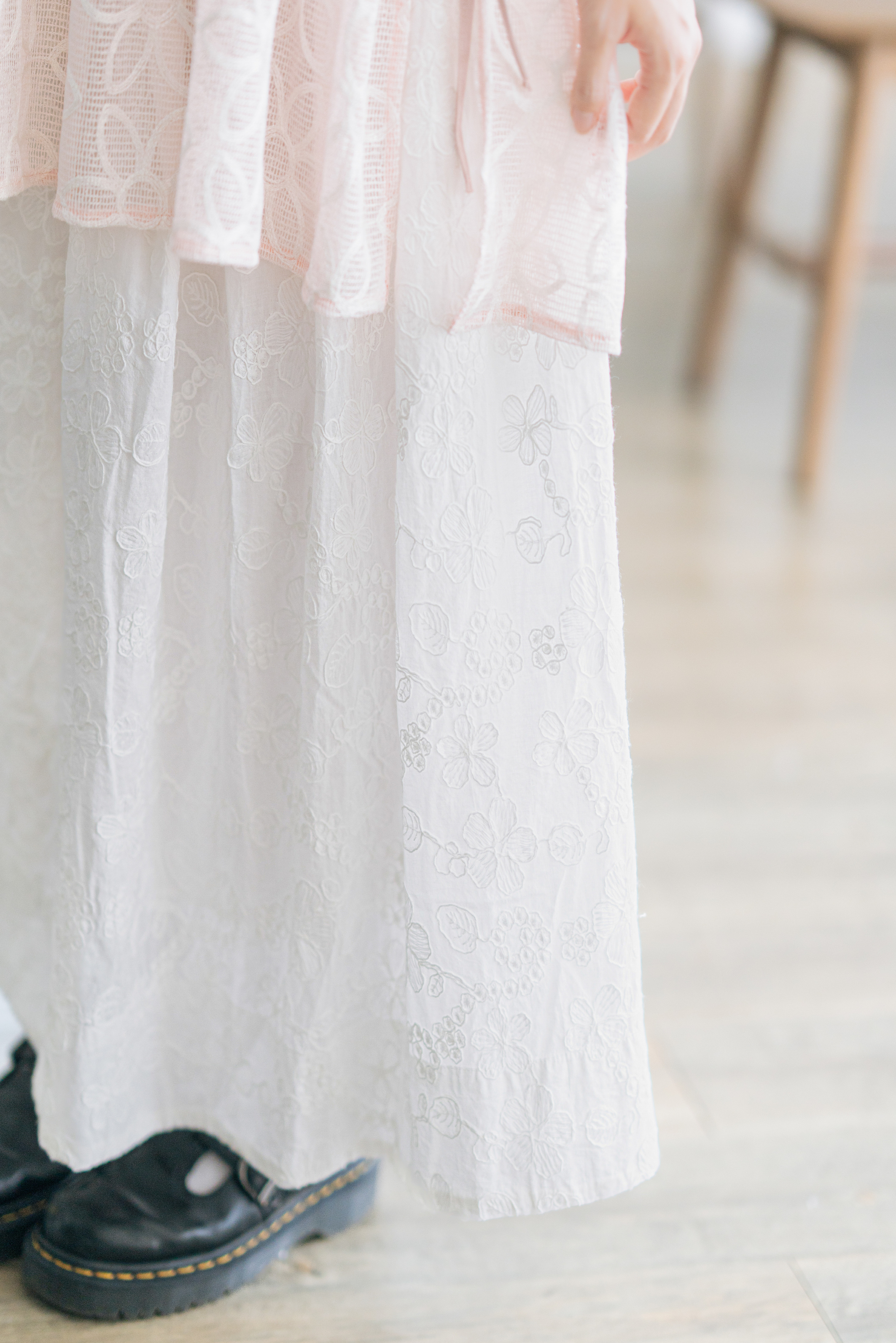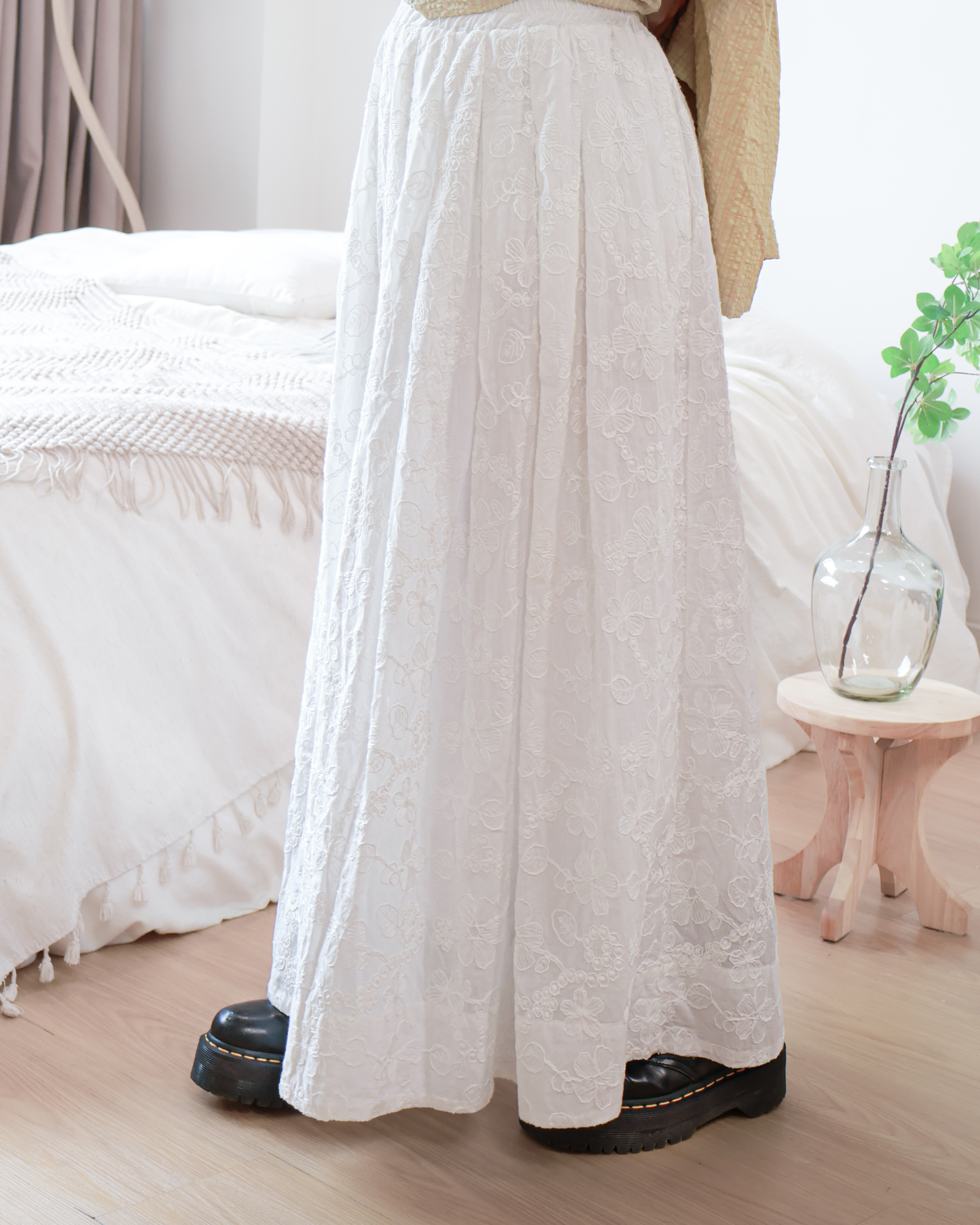 花園刺繡pattern橡筋長裙 · 1色入