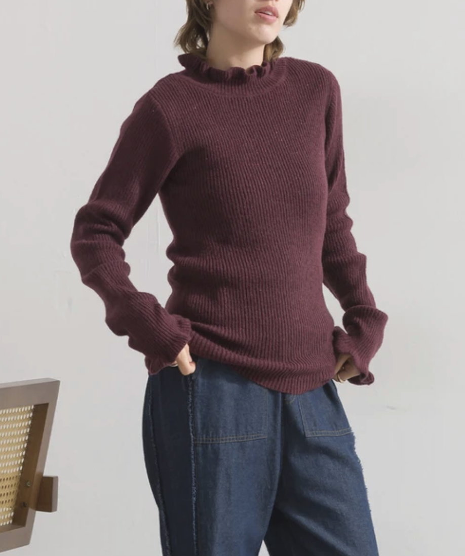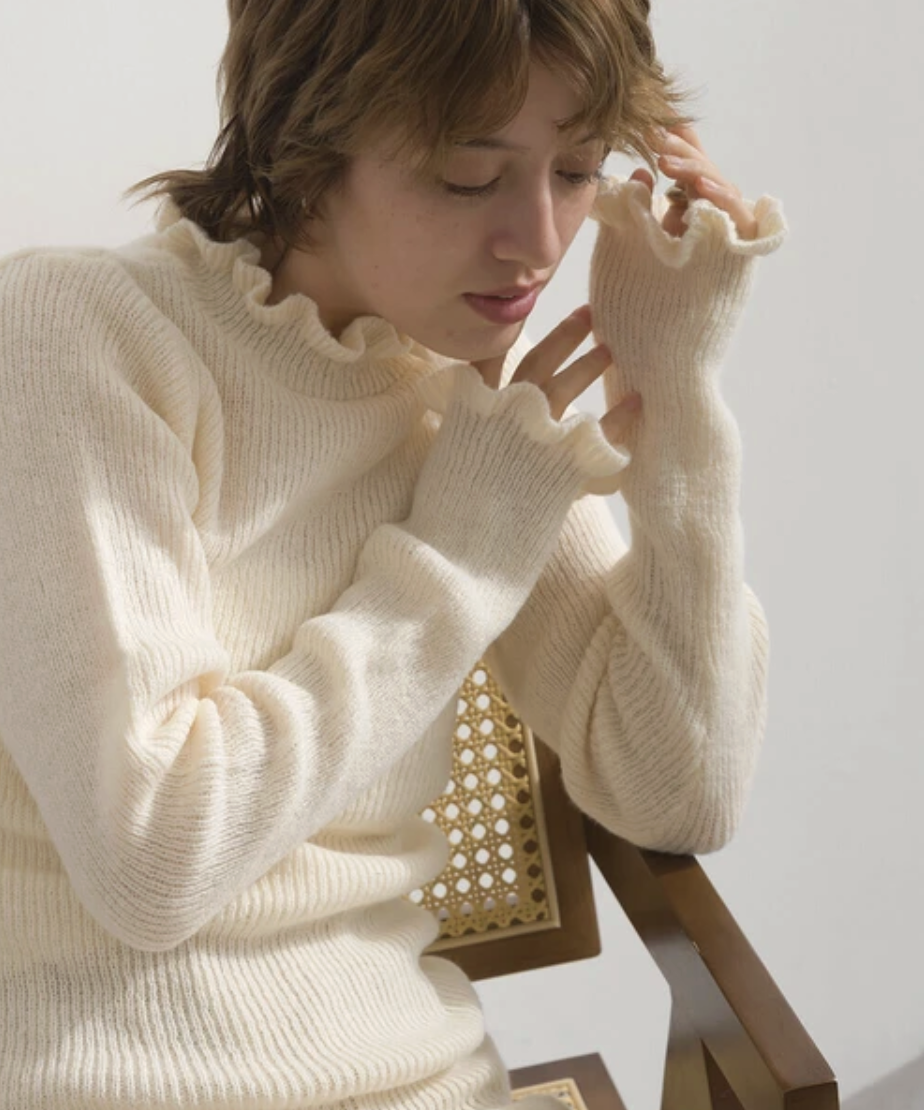 花瓣邊厚針織上衣 · 4色入