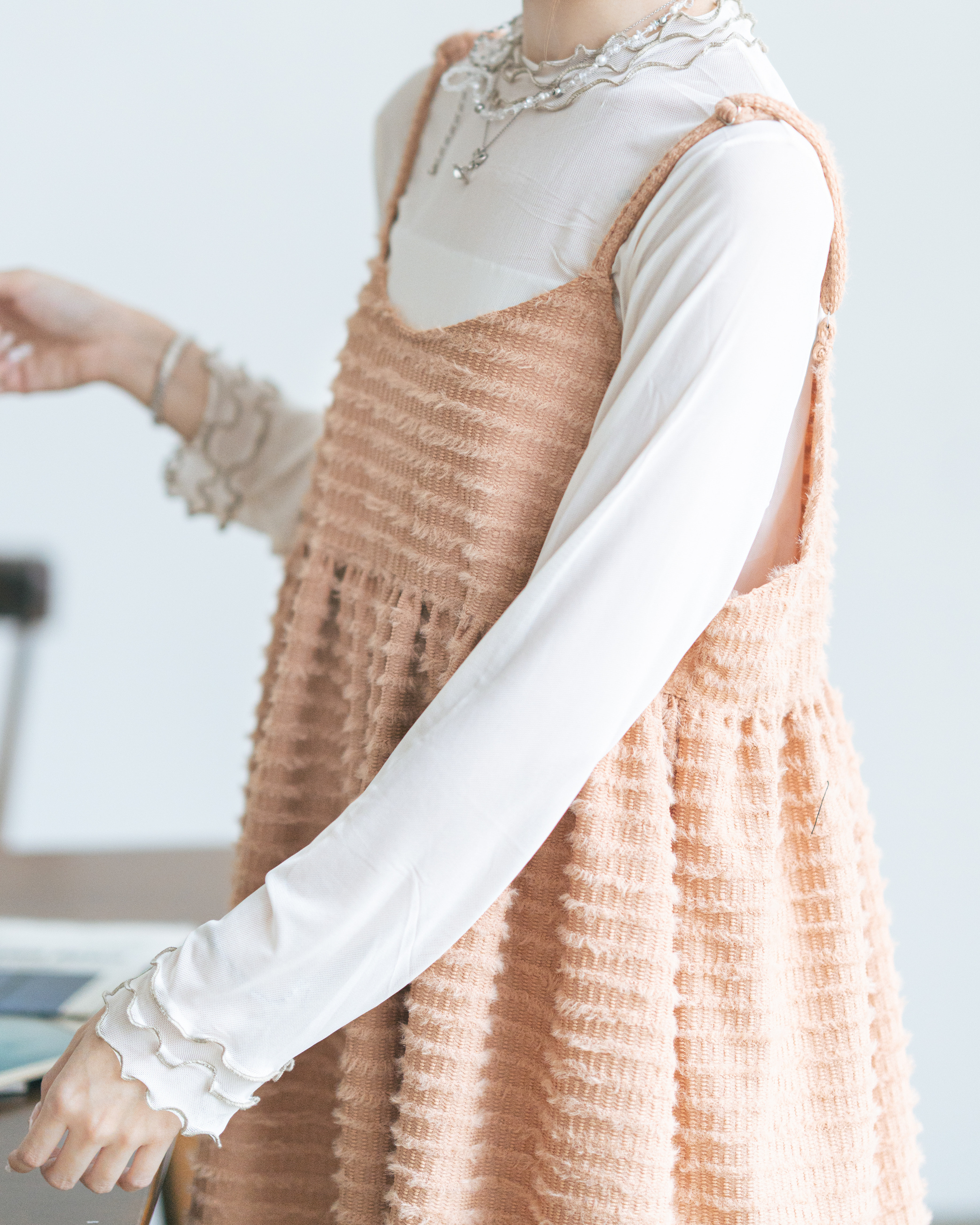 整體以一種針織感嘅短毛毛布料