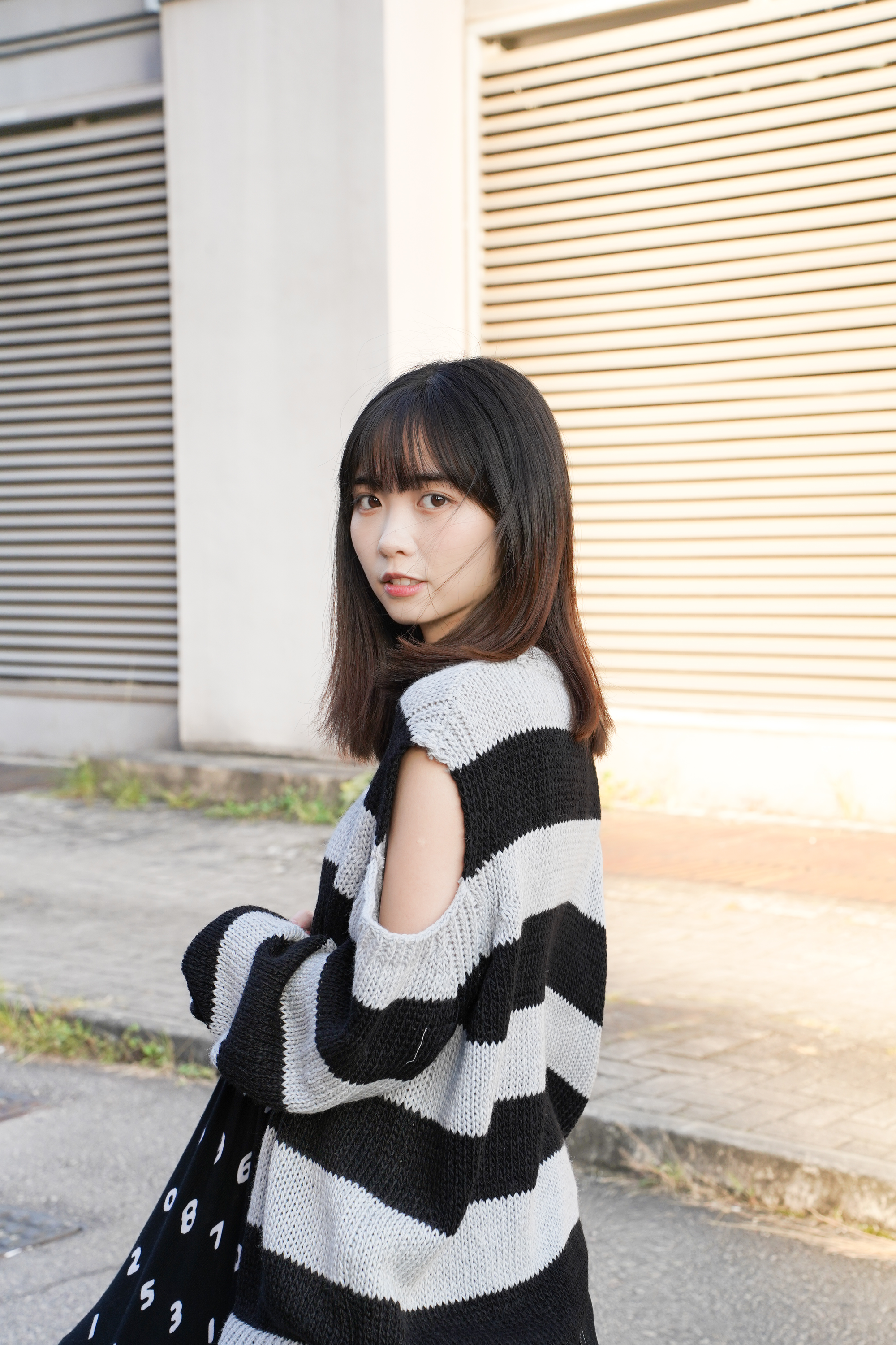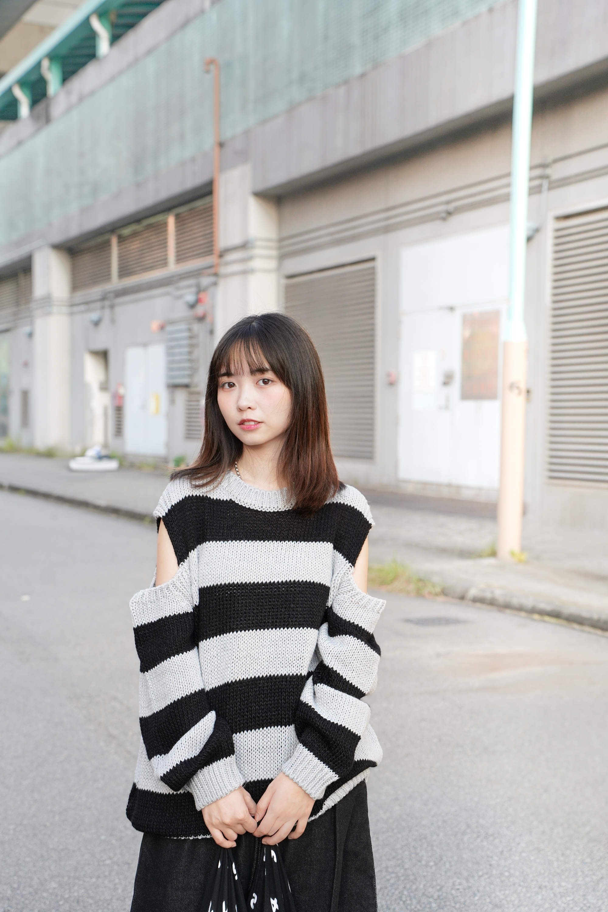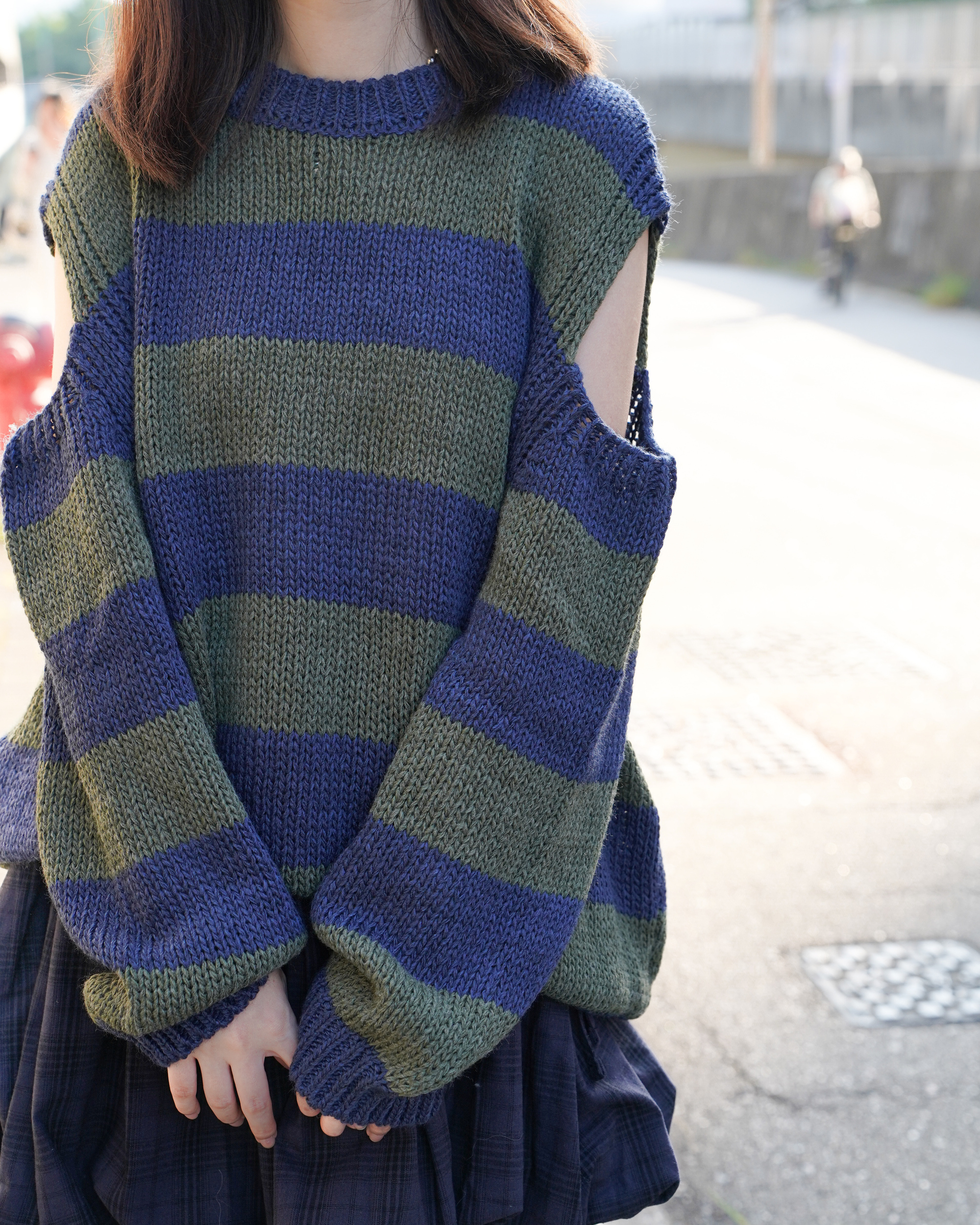 〘 露肩粗橫間針織上衣  〙
