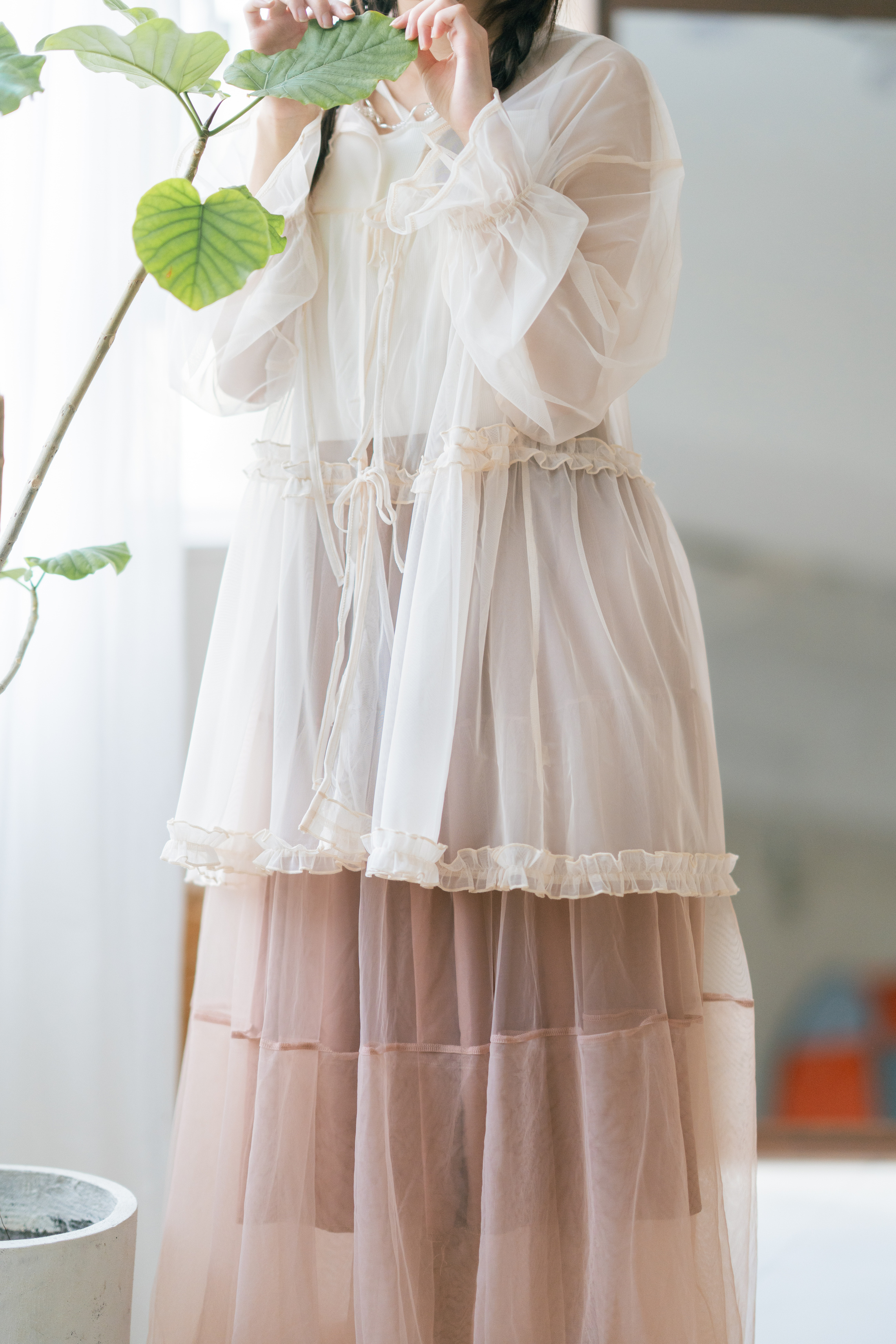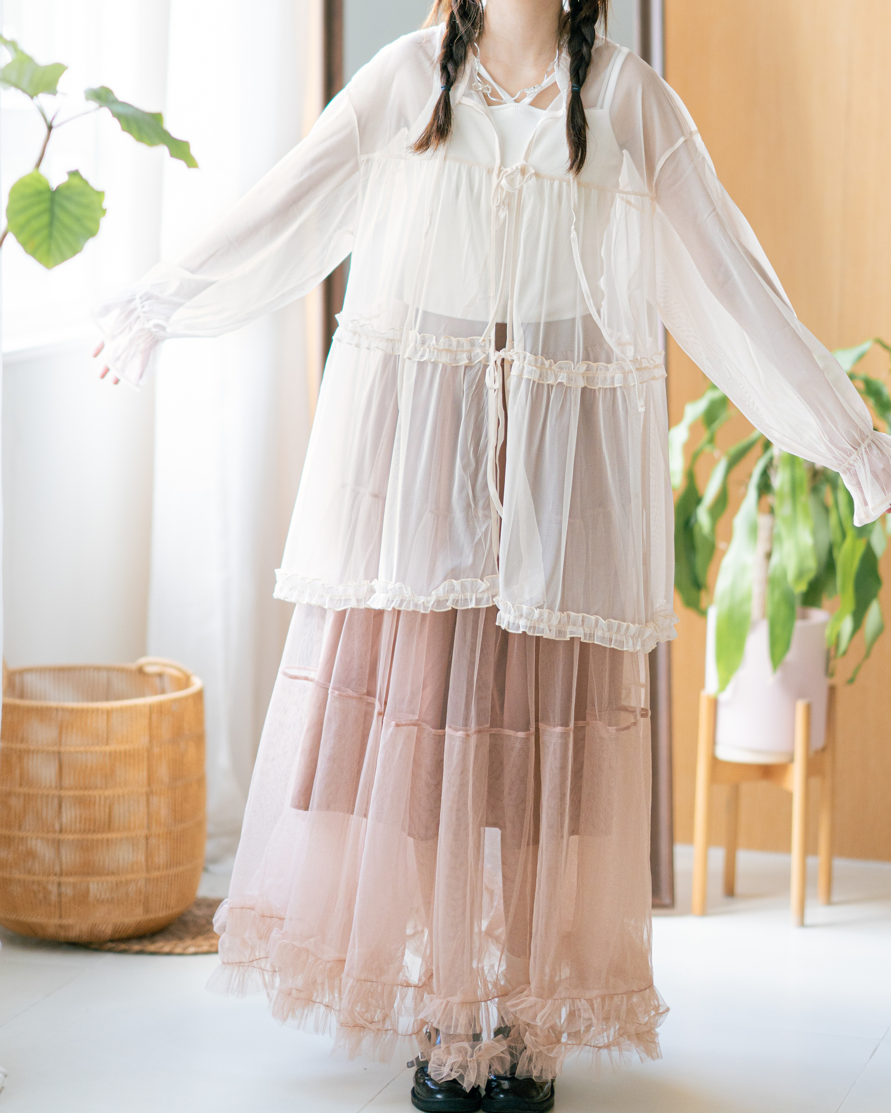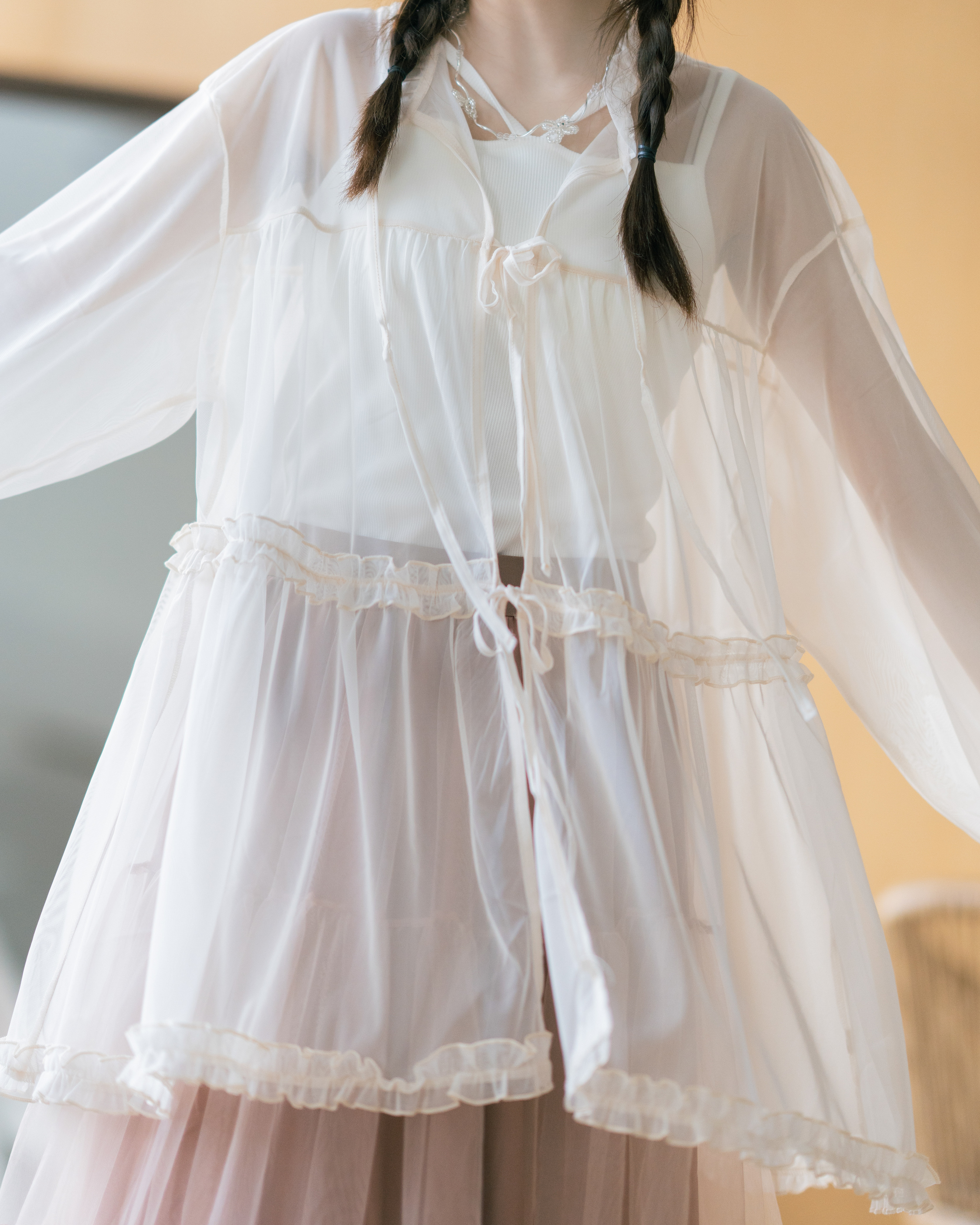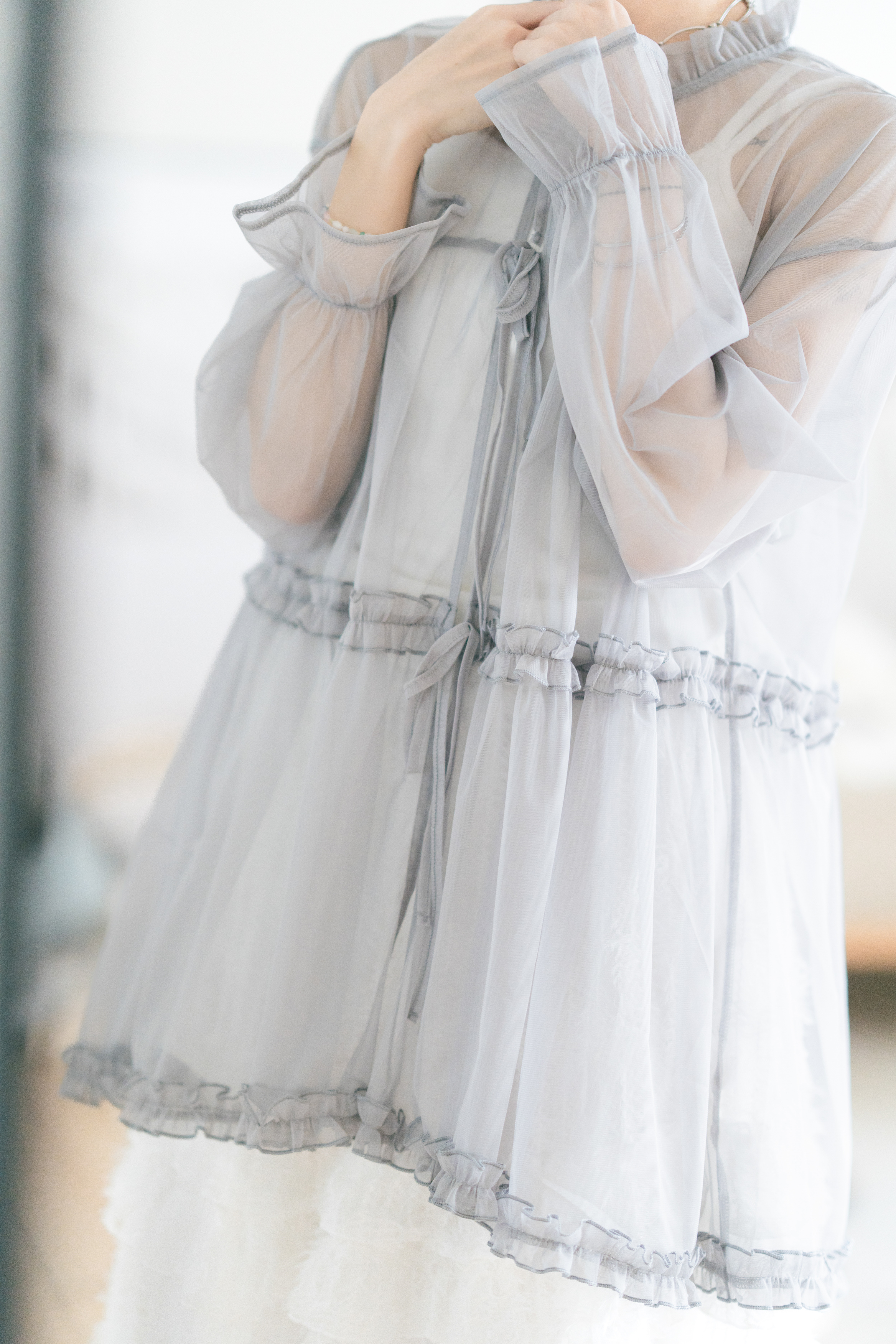 🦦 獨家!玻璃感Ruffle邊綁帶外套 · 2色入